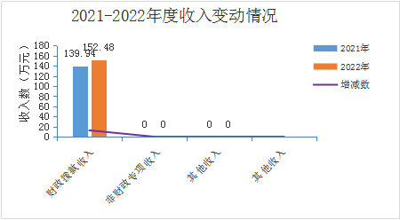 维西傈僳族自治县卫生监督所2022年度收入合计1,524,765.66元。其中:财政拨款收入1,524,765.66元,占总收入的100.00%;上级补助收入0.00元,占总收入的0.00%;事业收入0元(含教育收费0.00元),占总收入的0.00%;经营收入0.00元,占总收入的0.00%;附属单位缴款收入0.00元,占总收入的0.00%;其他收入0元,占总收入的0.00%。与上年相比,收入合计增加125,278.86元,增长8.95%。其中:财政拨款收入增加125,278.86元,增长8.95%;上级补助收入增加0.00元,增长0.00%;事业收入增加3,560,335.08元,增长0.00%;经营收入增加0.00元,增长0.00%;附属单位上缴收入增加0.00元,增长0.00%;其他收入增加0.00元,增长0.00%。主要原因是:职工职务职级变动、社保缴费基数调整等原因,使职工工资性收入较上年有所提高,其对应的社会保障缴费及工会经费等也有所提高。
