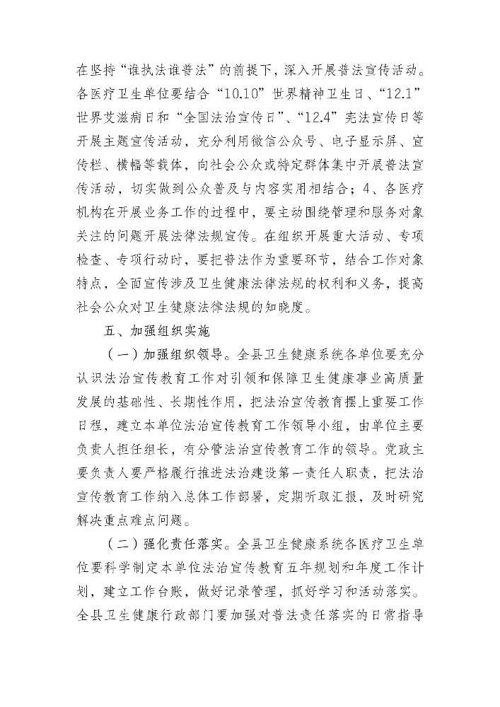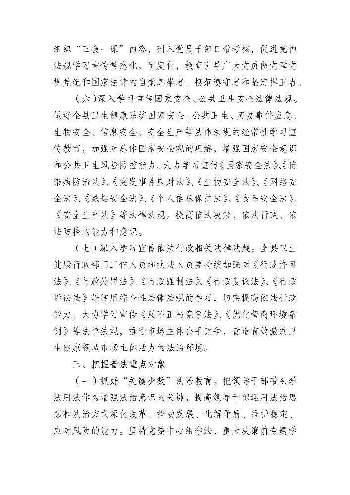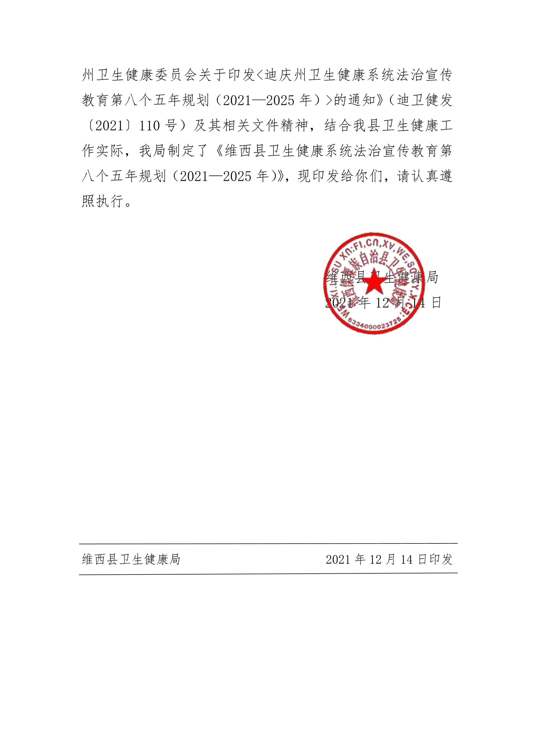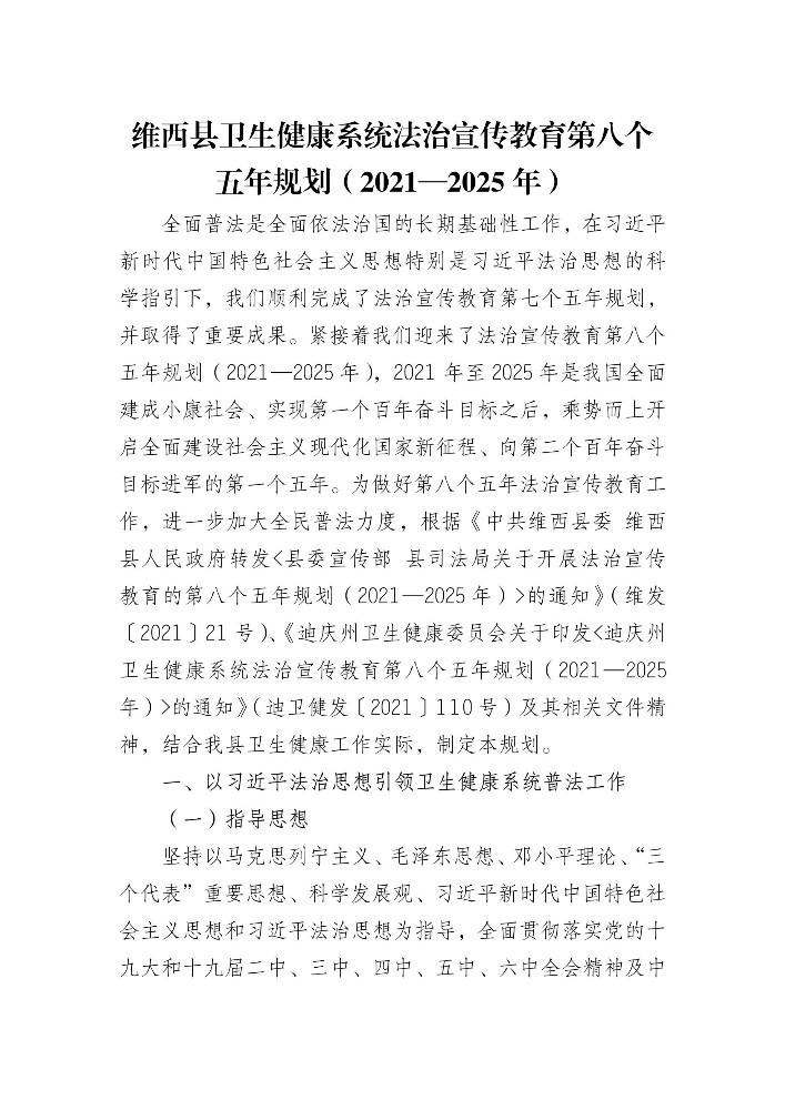 147维西县卫健系统“八五”普法规划