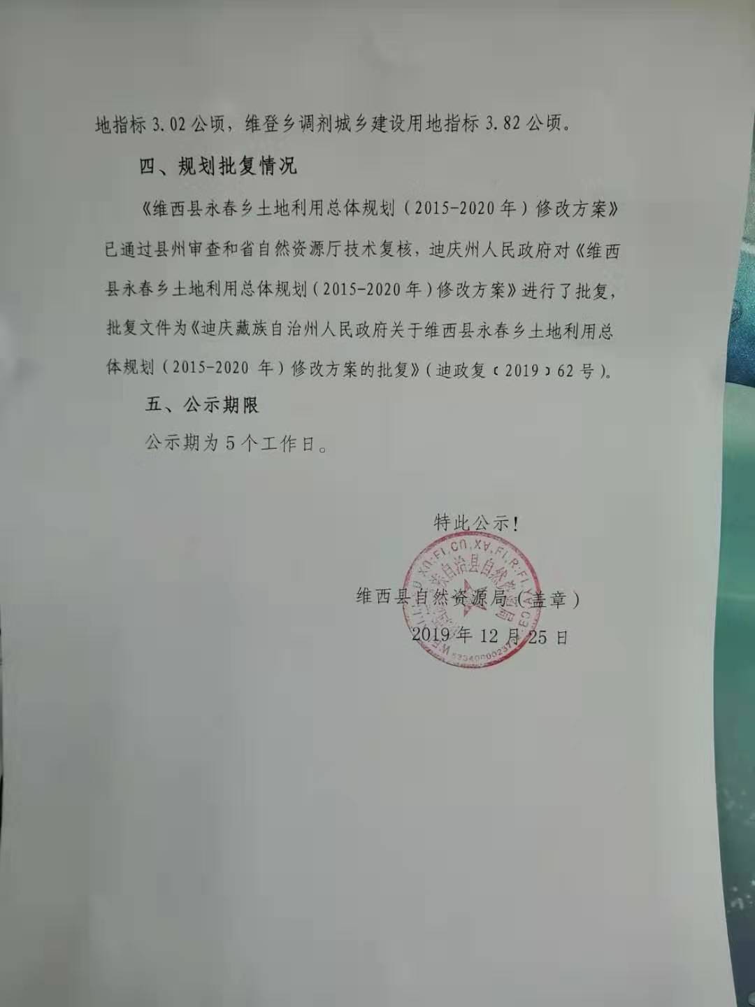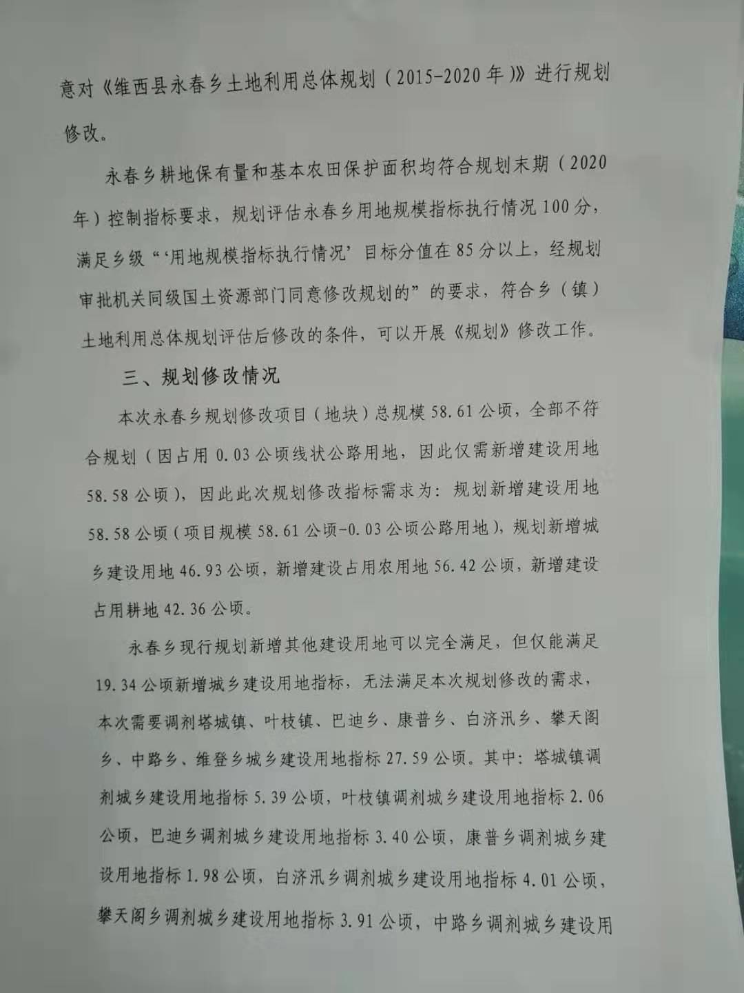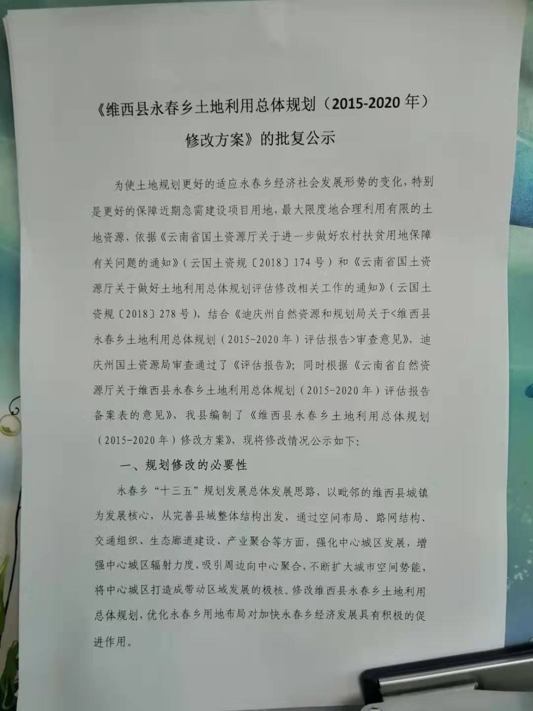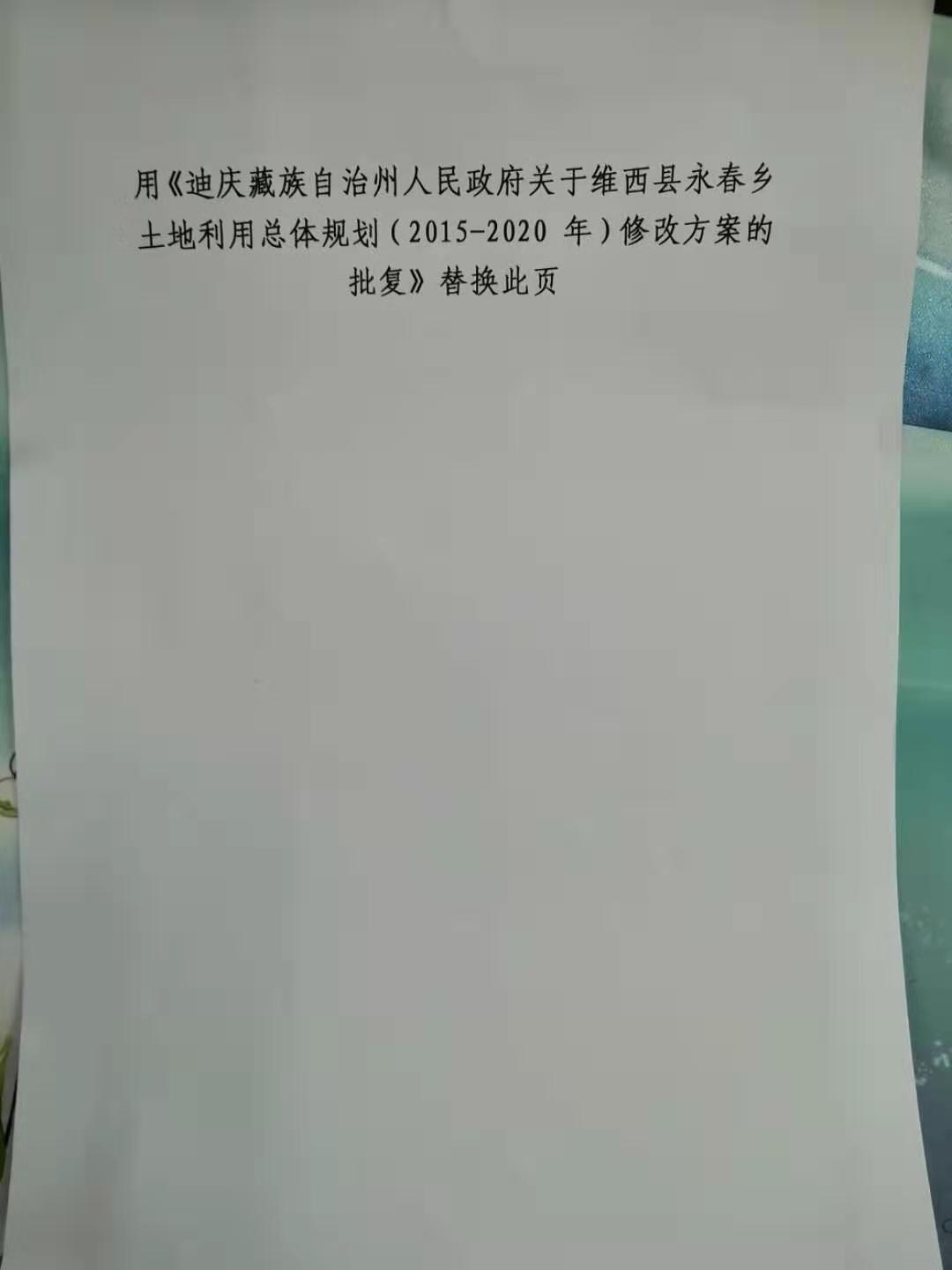 【征地拆迁】《维西县永春乡土地利用总体规划(2015-2020年)修改方案》的批复公示