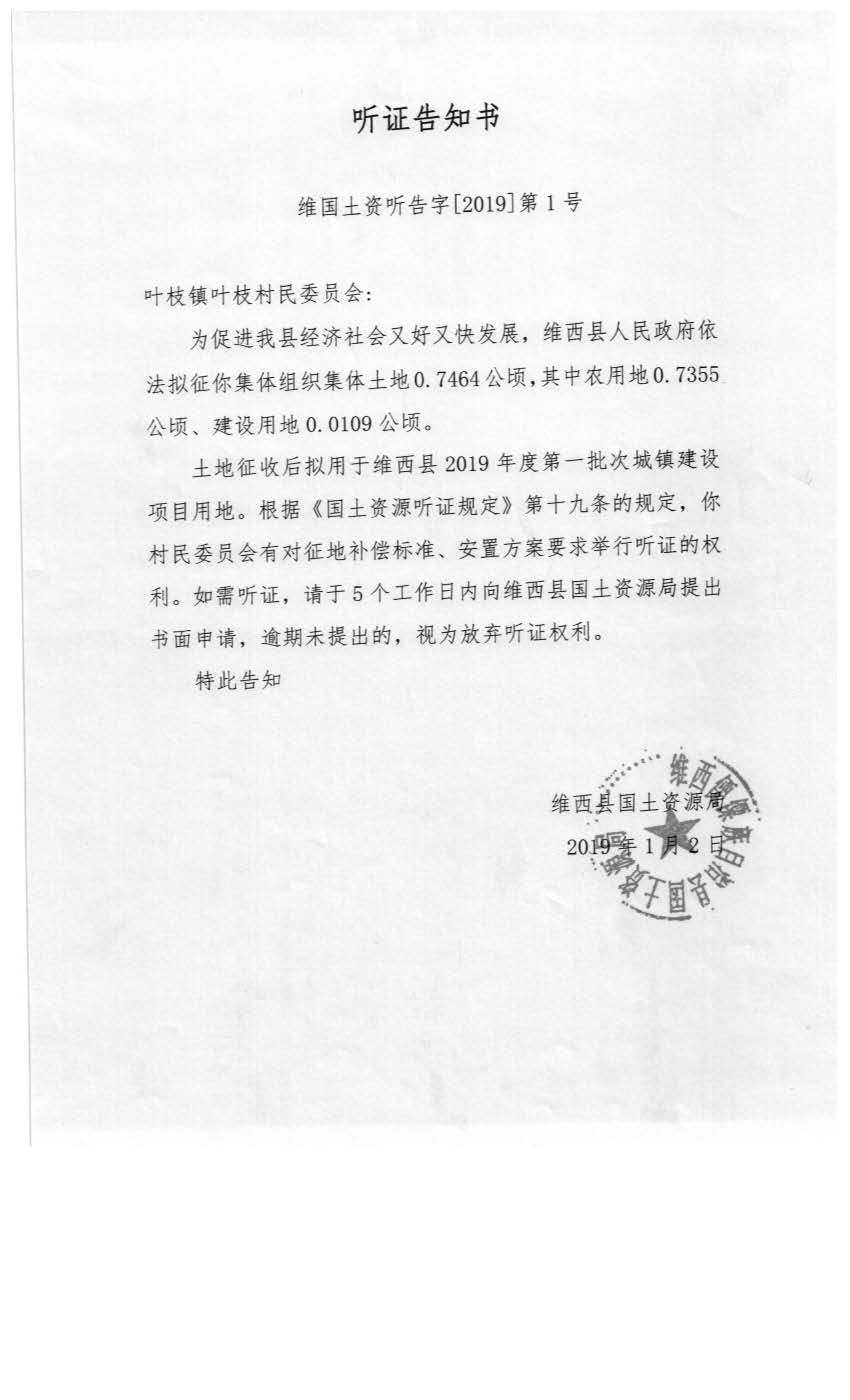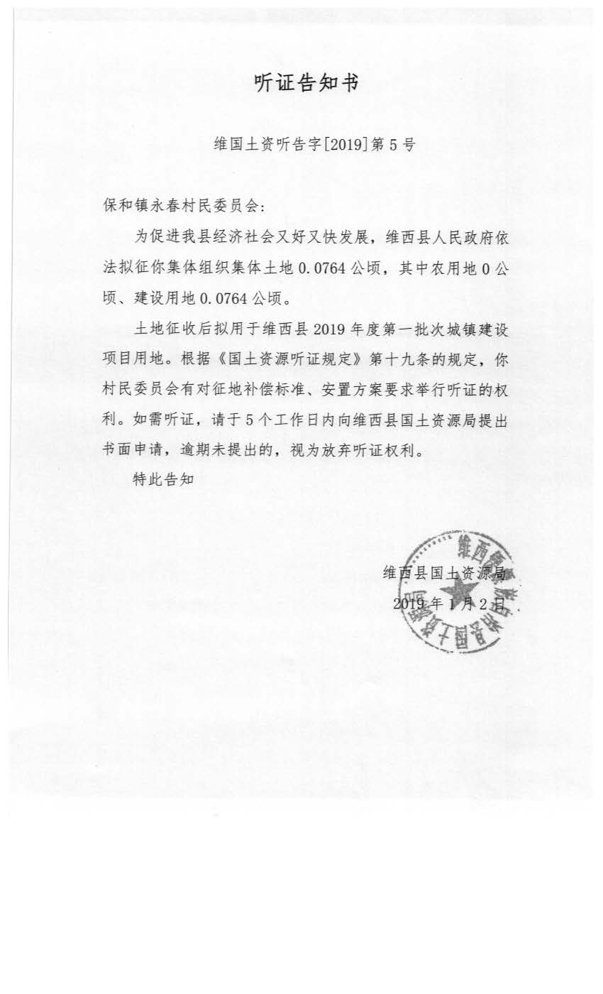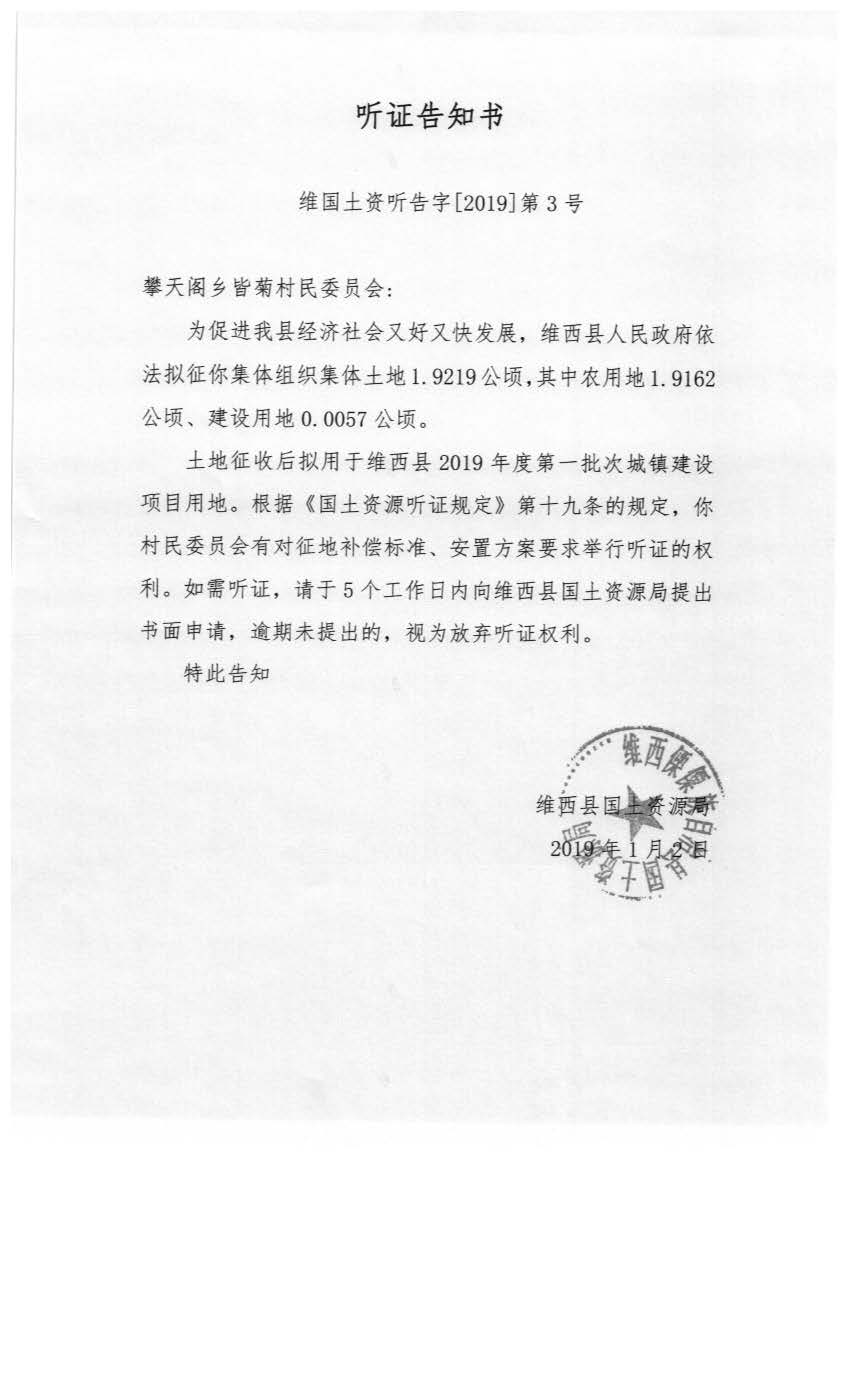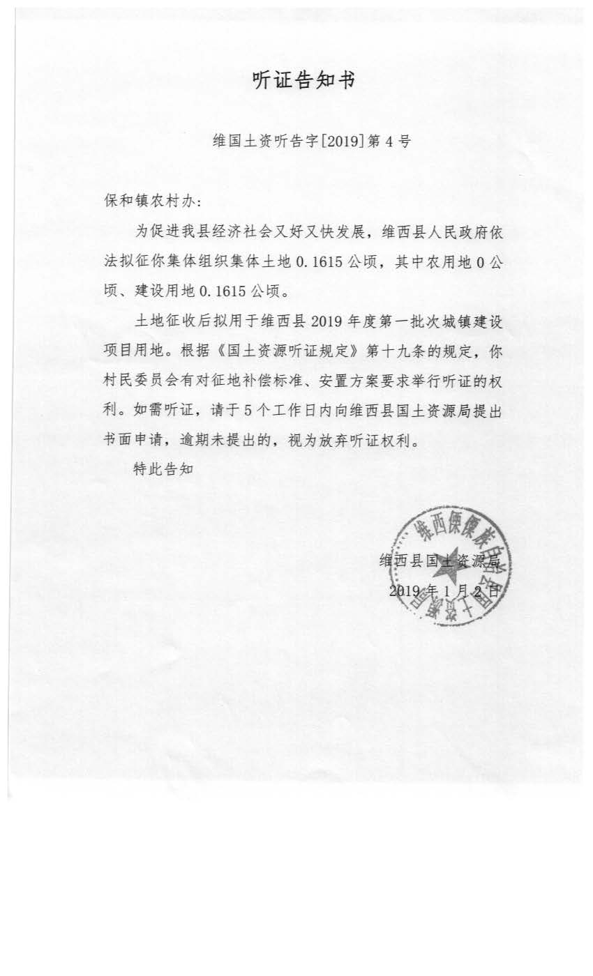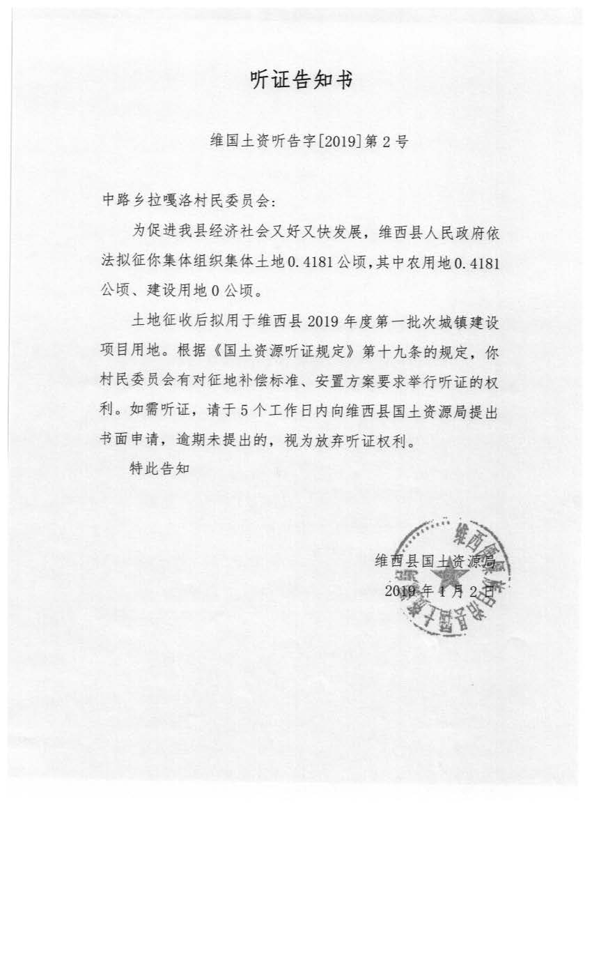 【信息公开】维西县2019年第一批次城镇建设用地听证信息公示