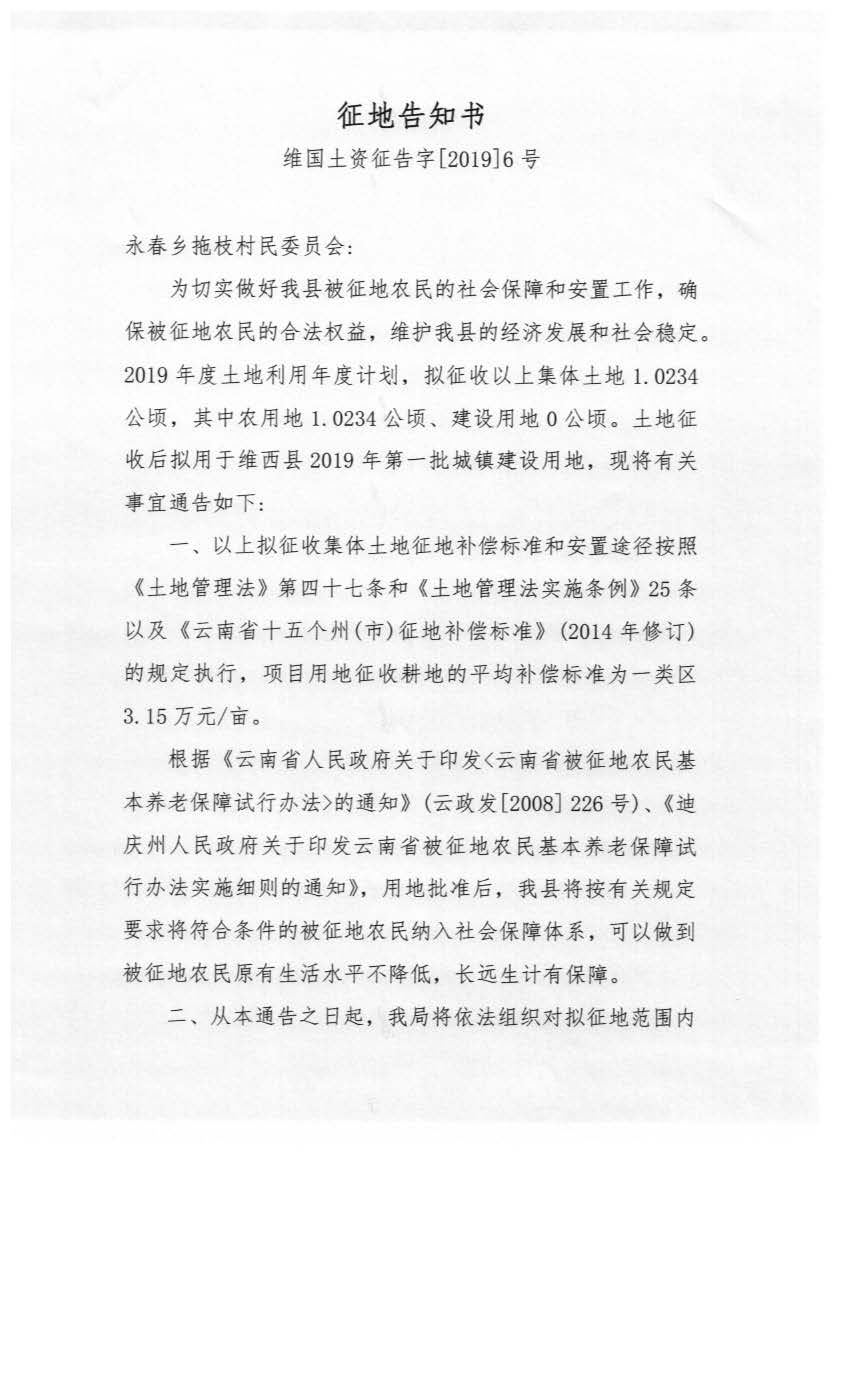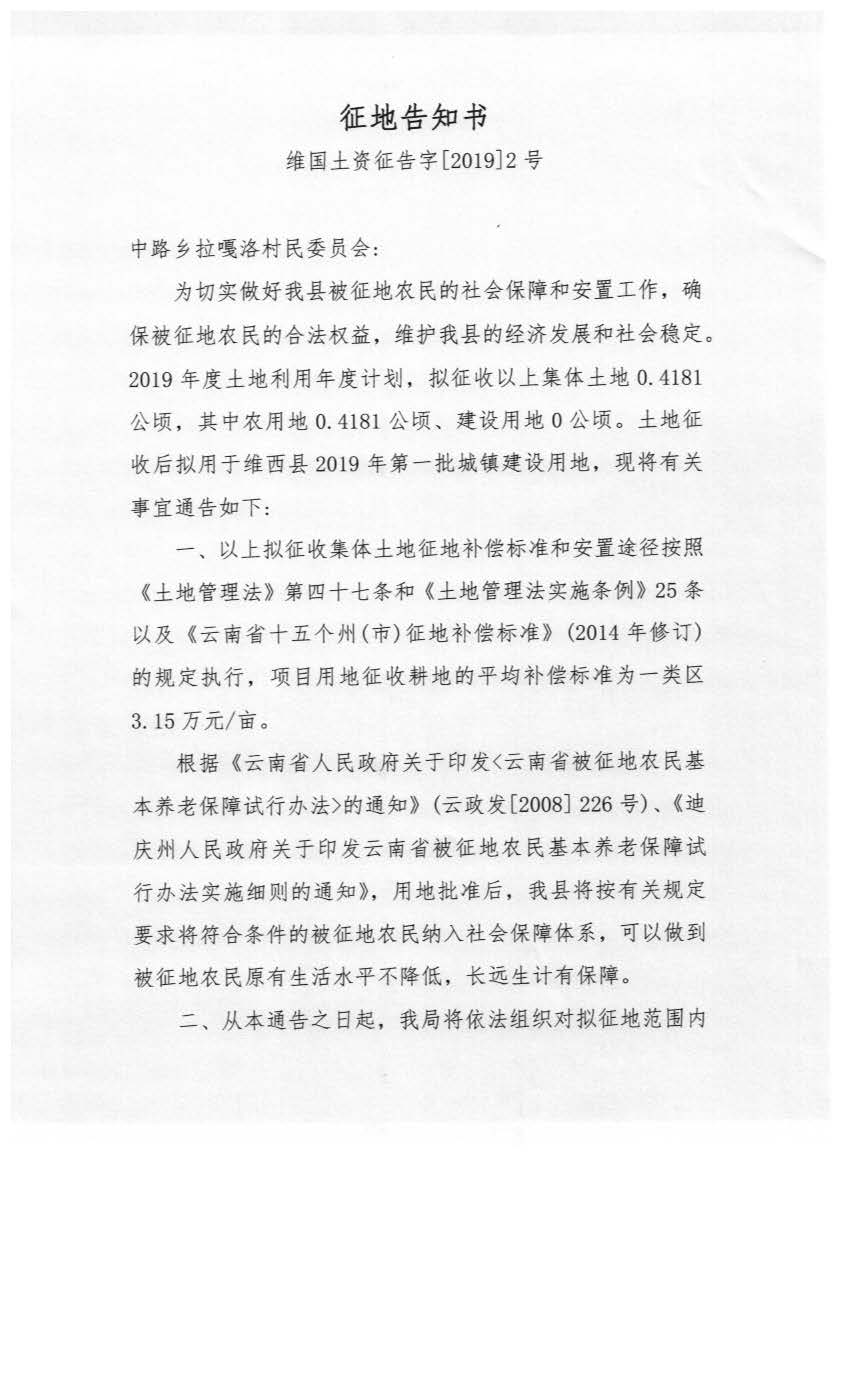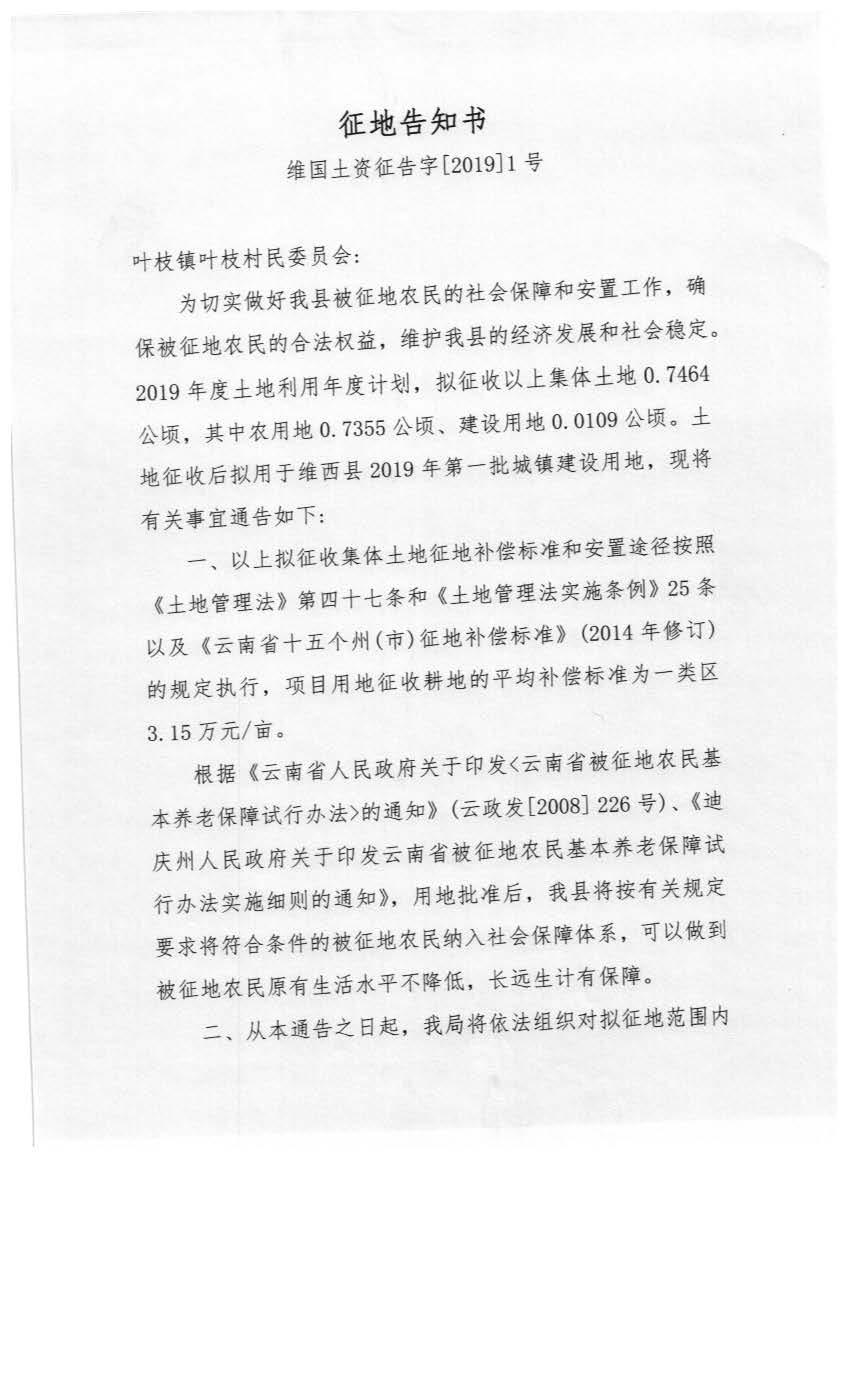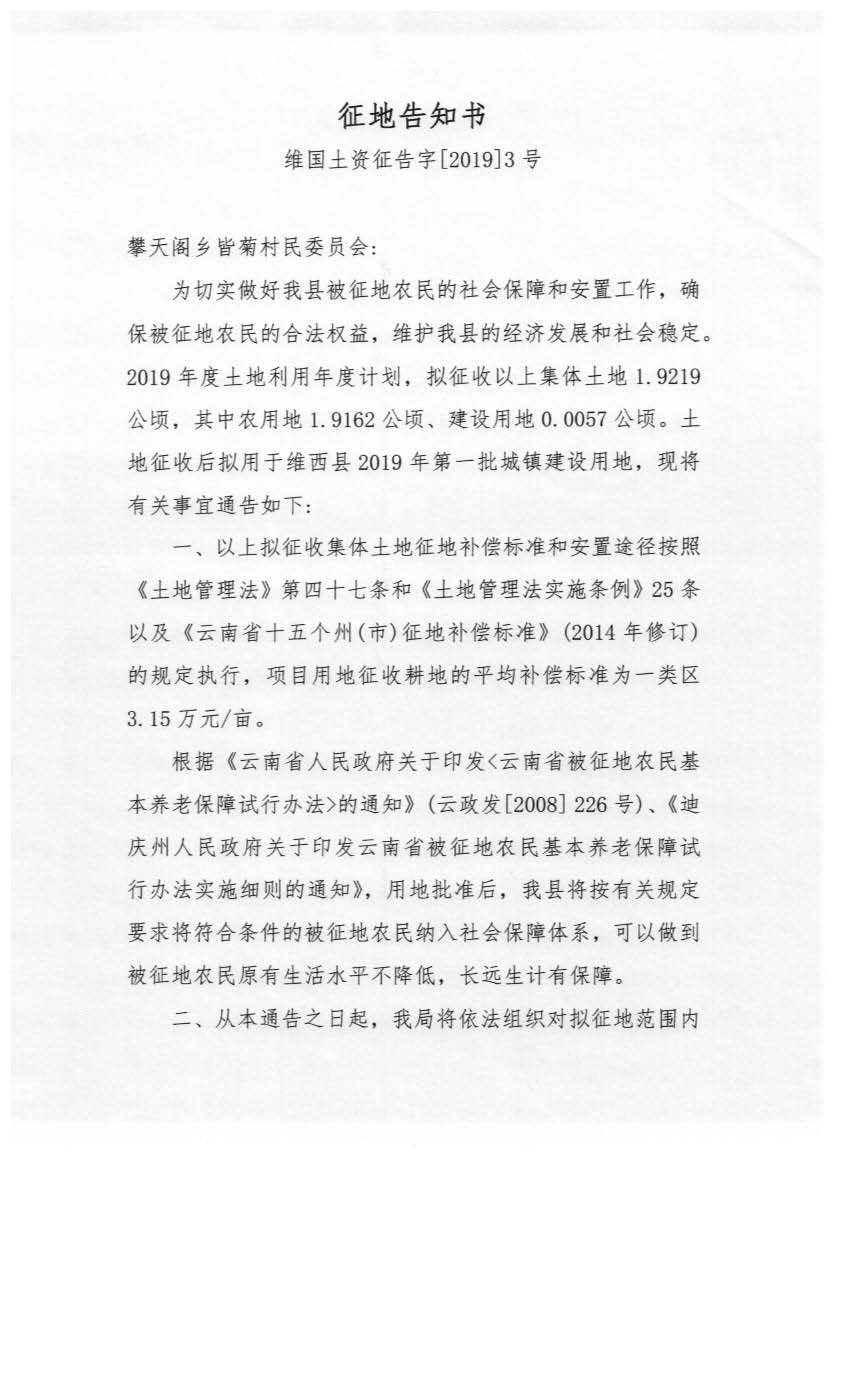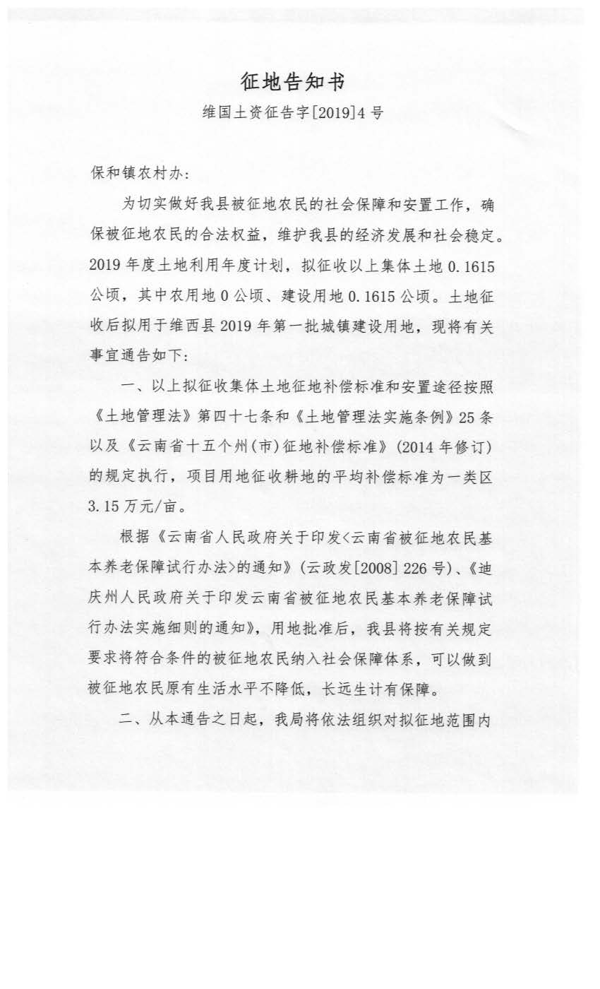 【信息公开】维西县2019年第一批城镇建设用地征地告知公示