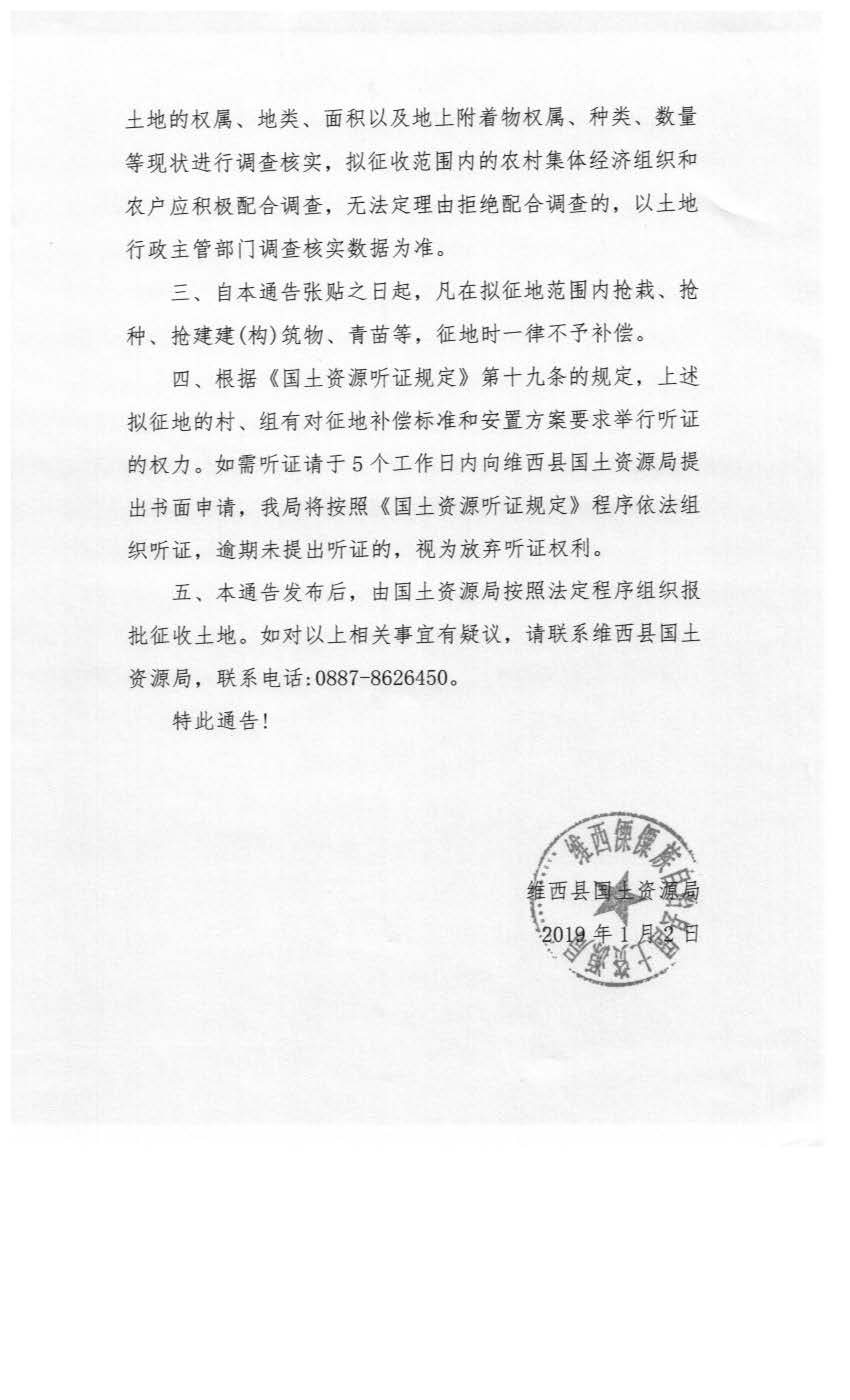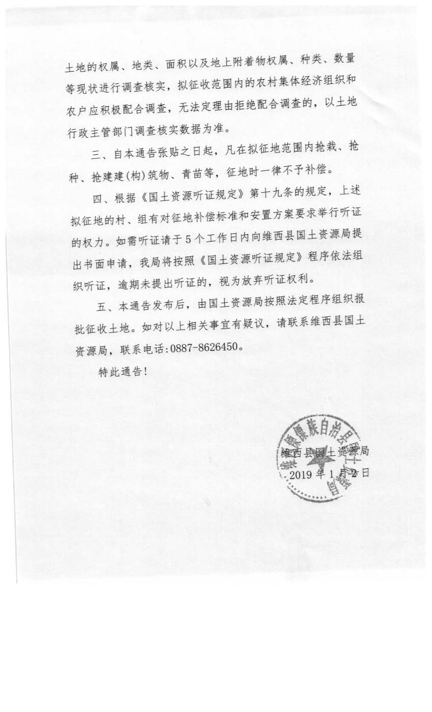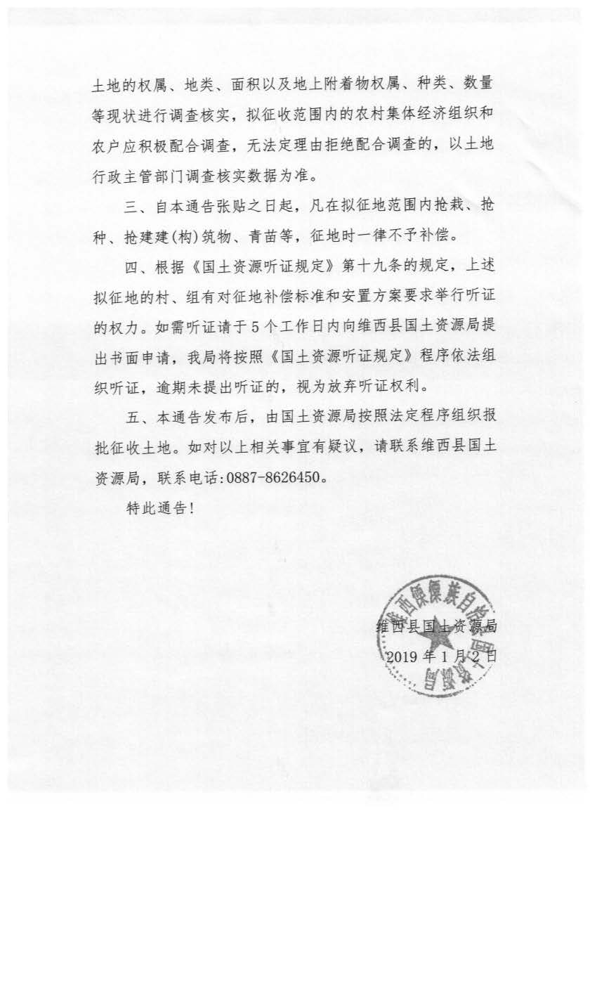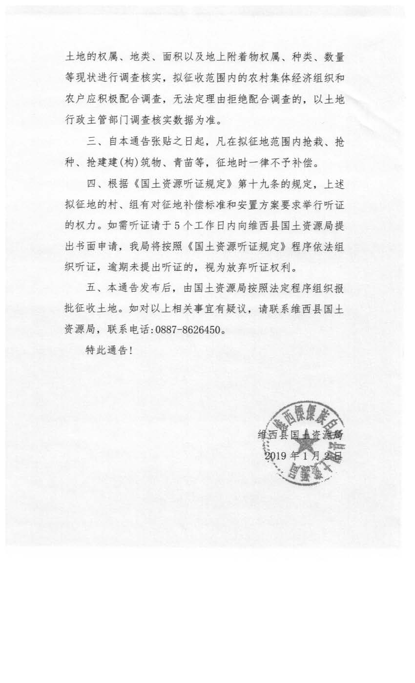 【征地拆迁】维西县2019年第一批次城镇建设用地听证信息公示