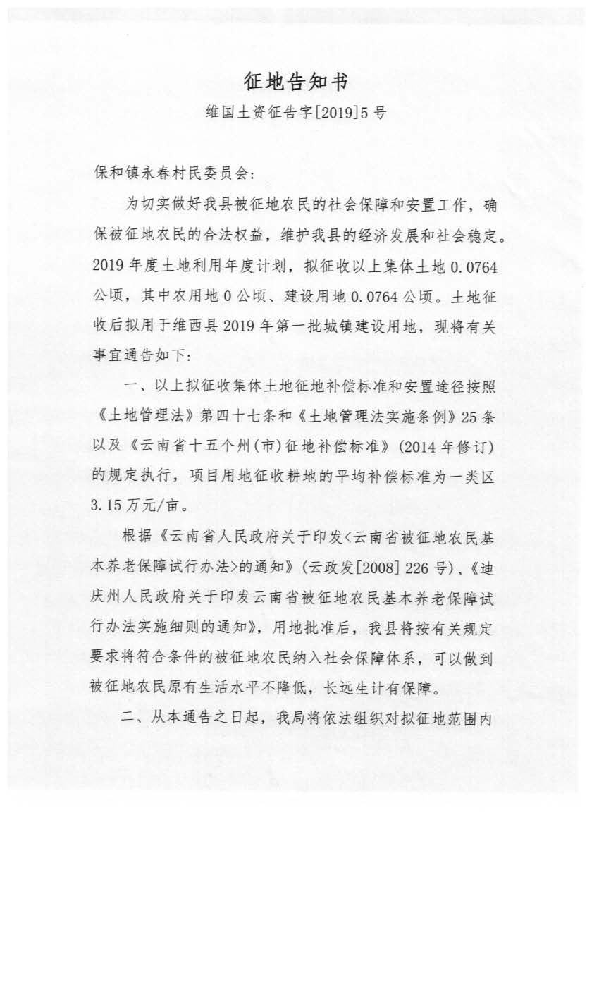 【征地拆迁】维西县2019年第一批城镇建设用地征地告知公示