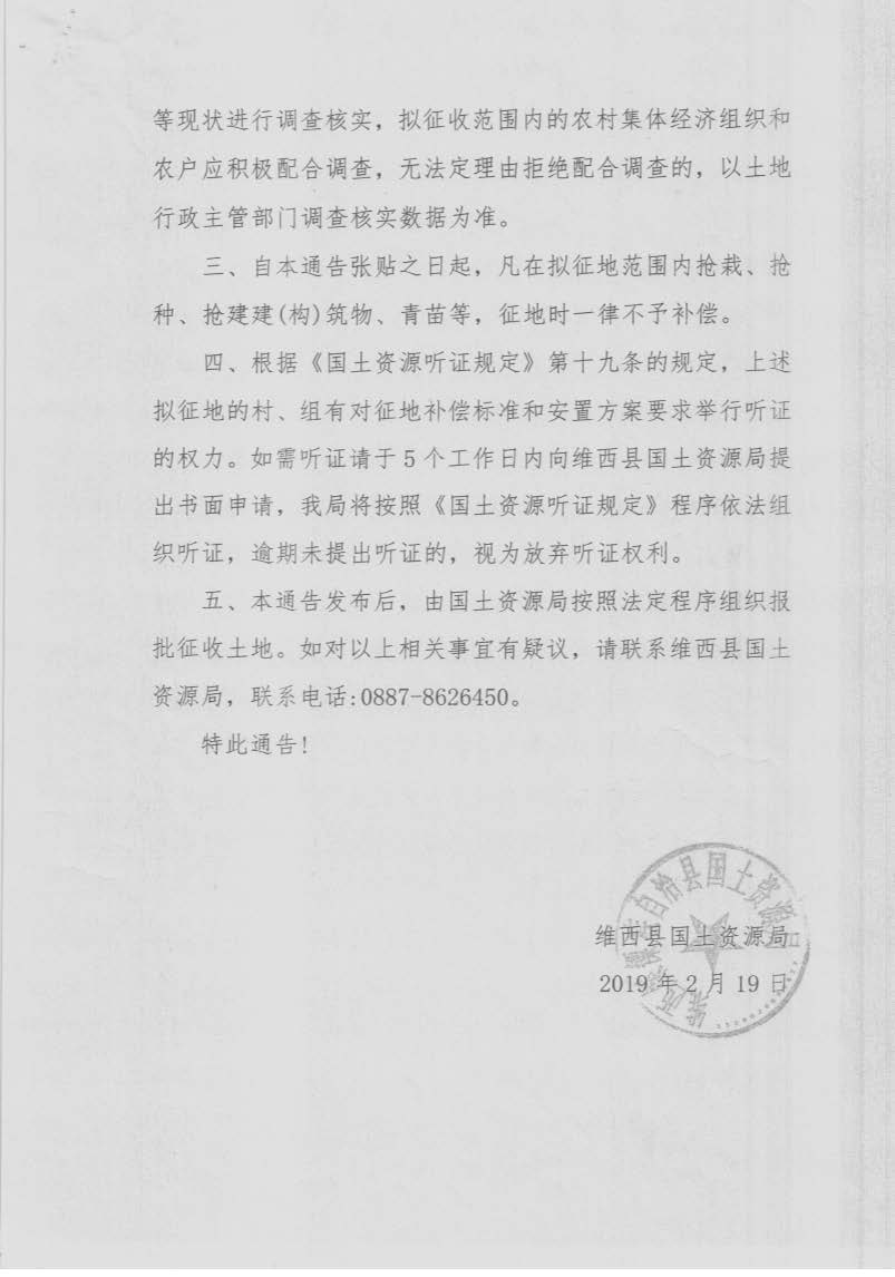 【征地拆迁】维西县2019年第二批城镇建设用地征地资料公示