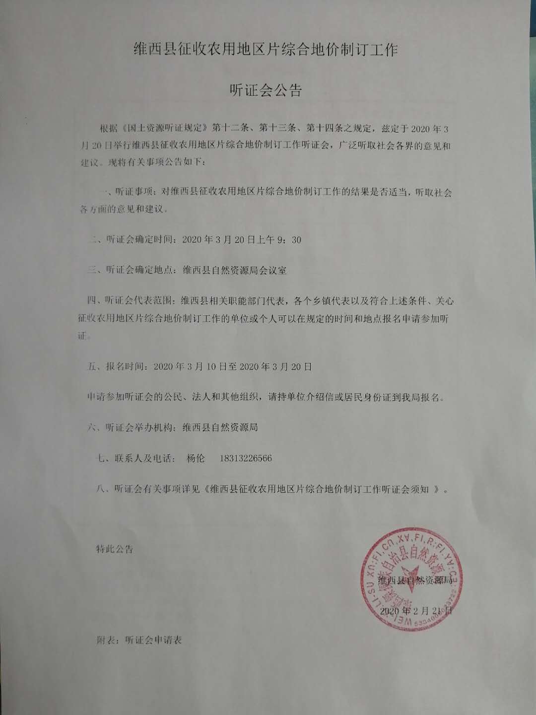 【征地拆迁】维西县征收农用地区片综合地价制订工作听证会公告