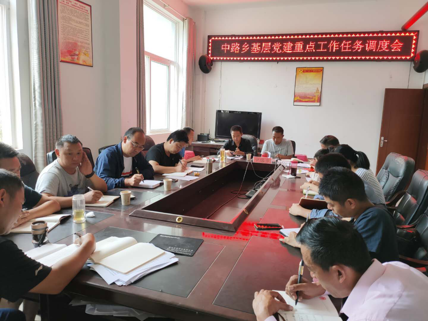 8月4日,中路乡组织在乡政府四楼召开基层党建重点工作任务调度会,各村总支书记列席。