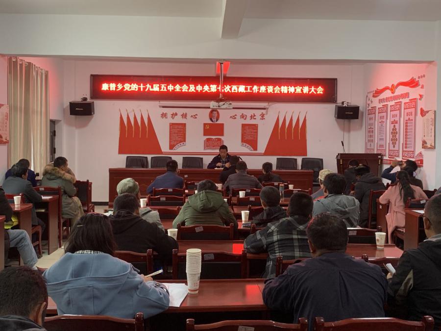 2020年12月2日下午,为确保党的十九届五中全会精神和中央第七次西藏工作座谈会精神贯彻到村到组,康普乡党委副书记、乡人民政府乡长曾学钦同志携乡党政班子成员,再次到康普村委会开展党的十九届五中全会精神和中央第七次西藏工作座谈会精神示范培训。各村“两委”、村民小组组长、支部书记及部分村民代表参加会议。