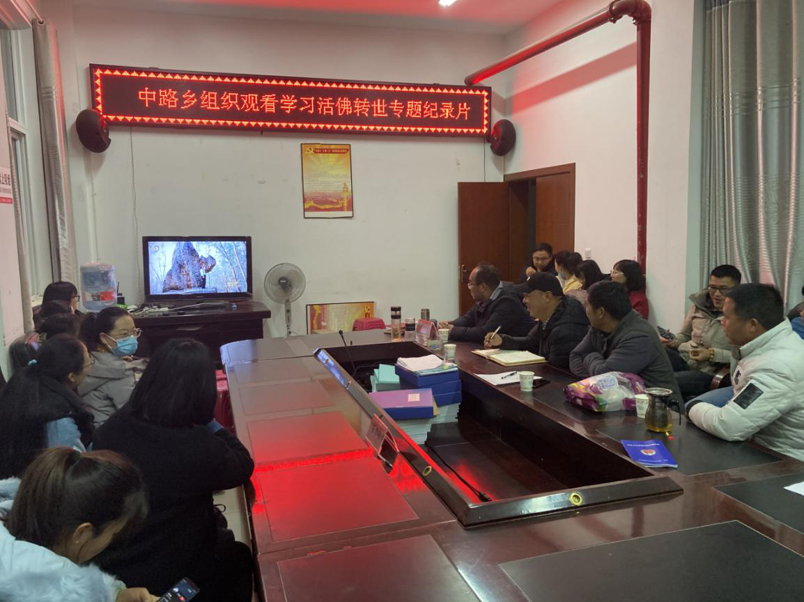 为增强党员干部对国家宗教政策的了解,提升团结一致、共谋幸福生活的信心和决心。近日,中路乡组织领导干部及职工观看纪录片《活佛转世——达赖喇嘛是怎样产生的》。