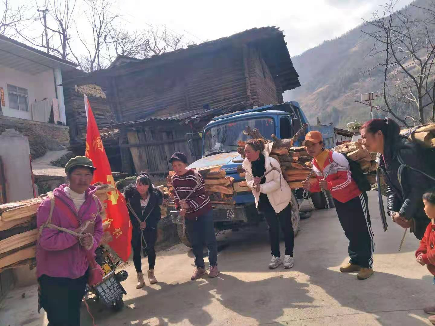 3月8日上午,在村两委的精心组织下,齐乐村33人妇女组成巾帼红旗服务队,帮助齐乐村念咱二组79岁的重病老人砍柴,送去温暖。齐乐村妇联主席将慰问品发放到重病老人手中,并为她送上节日的祝福和问候,详细了解她近期的生活、身体状况,鼓励她要乐观面对生活的困难,有任何问题和困难及时与村妇女组织联系。