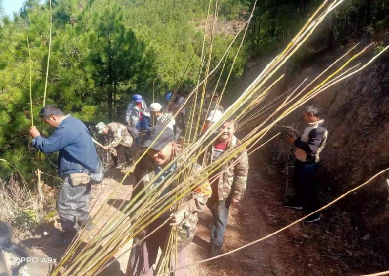 3月13日上午,在村两委的带领下,各位护林员和部分群众热情高涨地参与到植树活动中。各位护林员和群众以村民小组为单位秩序井然地排队领取树苗,自带劳动工具,怀着兴奋地心情来到指定的植树区域,你挖坑,我埋土,他浇水。分工明确,整个植树现场大家互帮互助,气氛活跃。二千六百多棵树苗不到半天时间就种植完了。为确保植树成活率,达到改善环境、建设生态的目的,本着“种一颗、活一颗”的原则,严格按照植树要求,在植树时注重泥土的覆盖,及时补水,联系人员落实后期的管护,做到植树规范,管护到位。