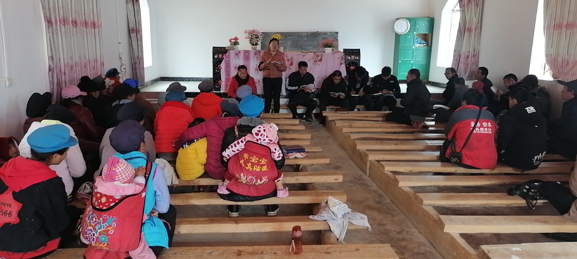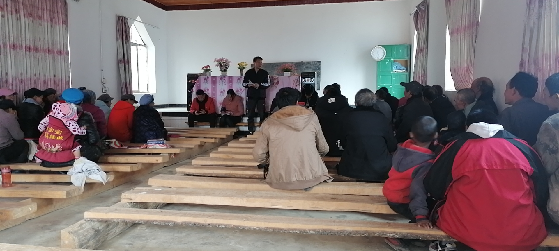 为将迪庆州“抓稳定防疫情固脱贫促团结”的“千促”活动精神及涉藏重点州敏感月维稳工作贯彻落实到位 ,3月14日阿尼比村两委、驻村工作队到嘎施里基督教堂开展宣讲活动,这一天恰逢教堂礼拜日。宣讲前,村两委先将宣讲内容及形式告知教堂长老,让其动员信教群众参与宣讲活动,同时用心用情感受宣讲内容,并将其转化为实际行动为乡村振兴及“十四五”规划贡献自己的一份力量。