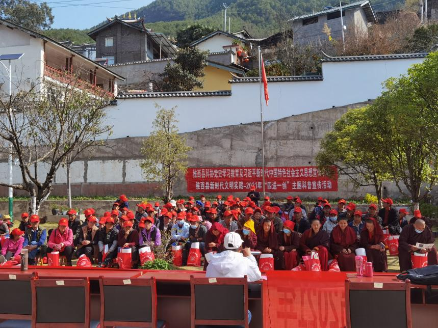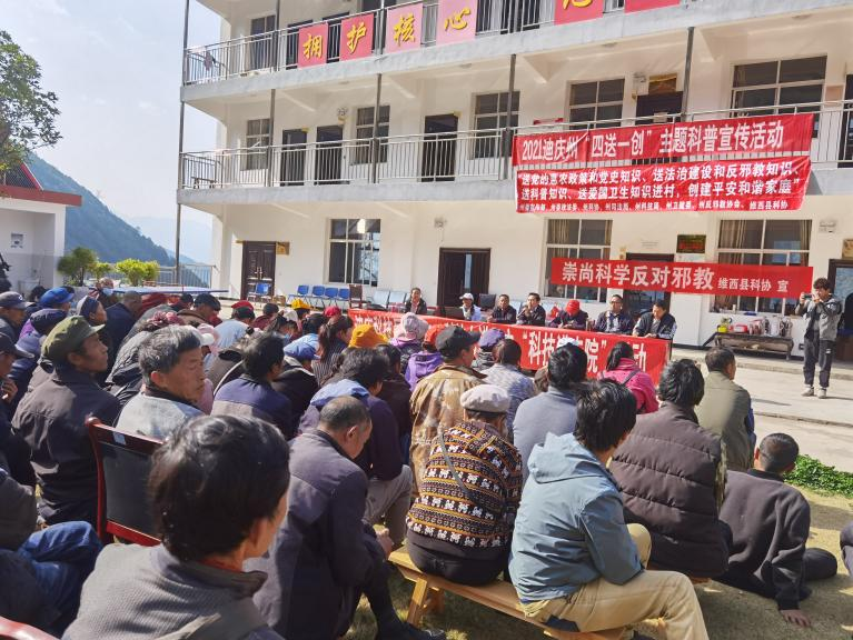 3月18日,迪庆州科协、迪庆州反邪教协会联合州委宣传部、州委政法委、州科技局、州司法局、州卫健委等相关部门,在岔枝村开展“四送一创”主题科普宣传活动。