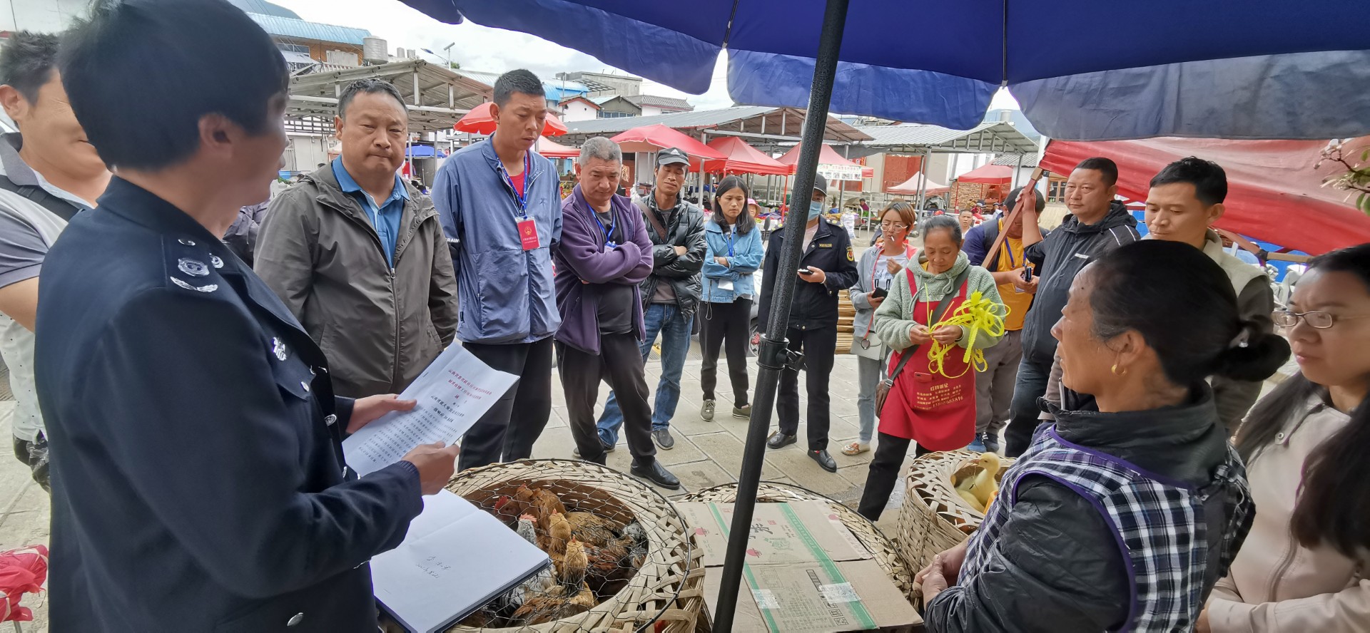 现场对鸡苗出售的商户有和杰宏、曾学英、和武兵户,工作人员对几户集中进行了《云南省重大突发公共卫生事件一级响应20条措施》、《中华人民共和国动物防疫法》、《云南省农业农村厅办公室关于加强动物及其它产品检疫监管工作的通知》相关文件精神宣传引导教育,与商户共同商量处理办法,规劝商户收摊,不能在县城大街小巷、农贸市场进行活禽交易。