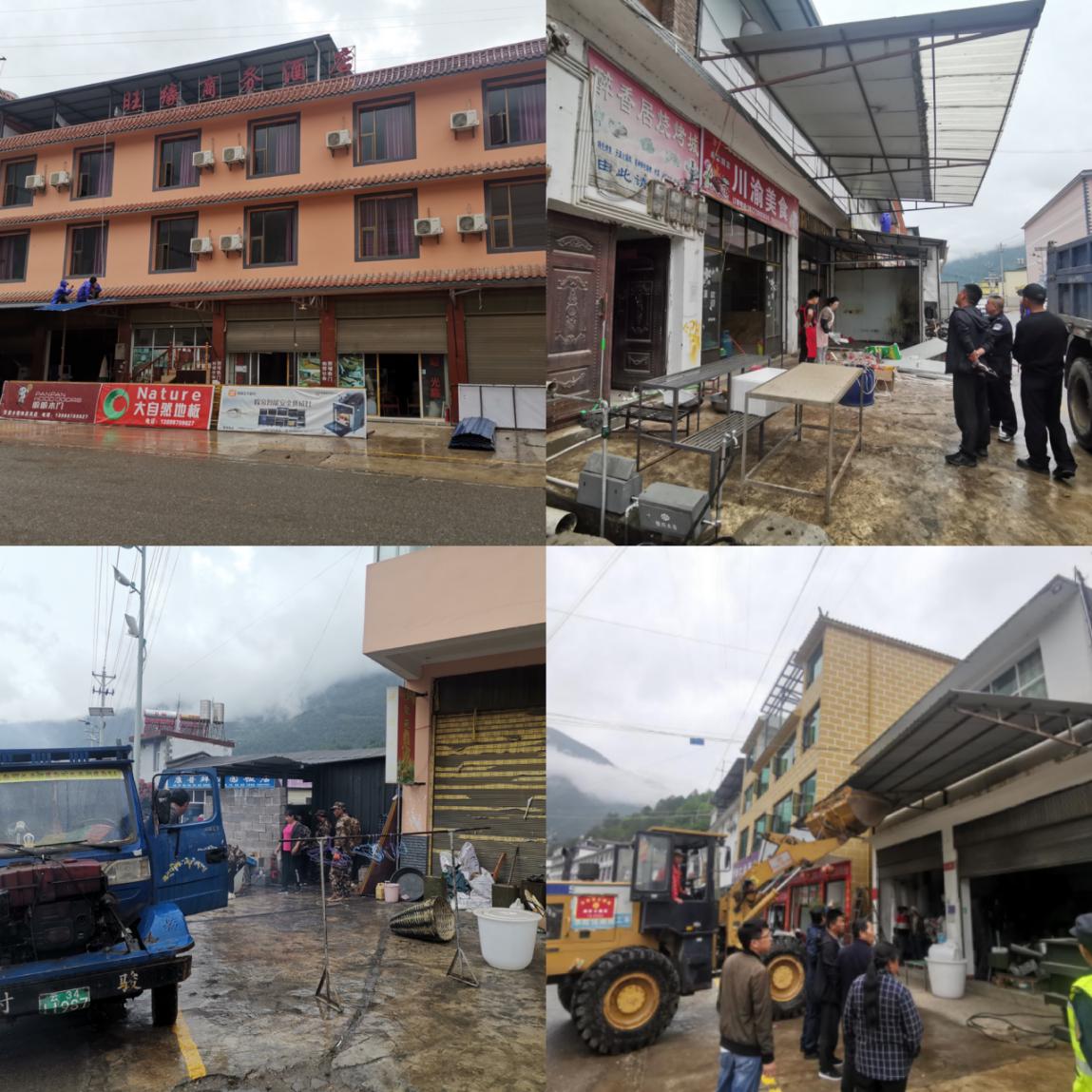 此次清理行动共计出动人员128人次,动用装载机一台,皮卡车一辆,四缸机两辆,警车一辆,清理街道1.5公里,拆除钢架棚共计39间4000多平米,拆除违章建筑零时厨房共计12间300多平米,清除乱搭乱建广告牌28个。
