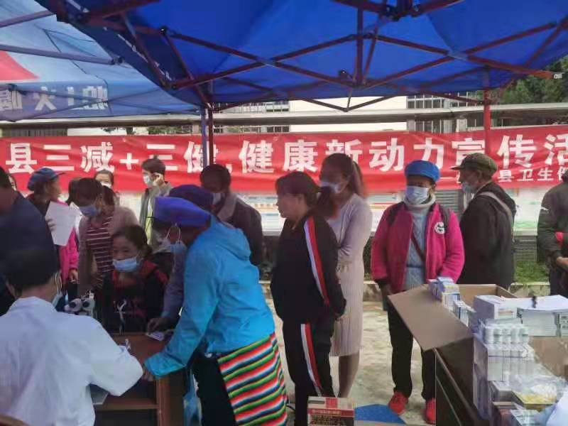 本次活动采取设立健康义诊台,由县人民医院专家对叶枝前来群众做健康义诊服务、进行分类健康指导、发放必要药品,然后由县创促办及县卫健局工作人员对前来参加活动的群众发放健康教育宣传折页、宣传册、发放宣传小礼品,同时进行相应的科普健康知识、健康促进、三减三健相关键康知识宣传讲解。此次活动共计宣传群众330人,发放宣传册宣传折页900余份份,宣传小礼品300余份。