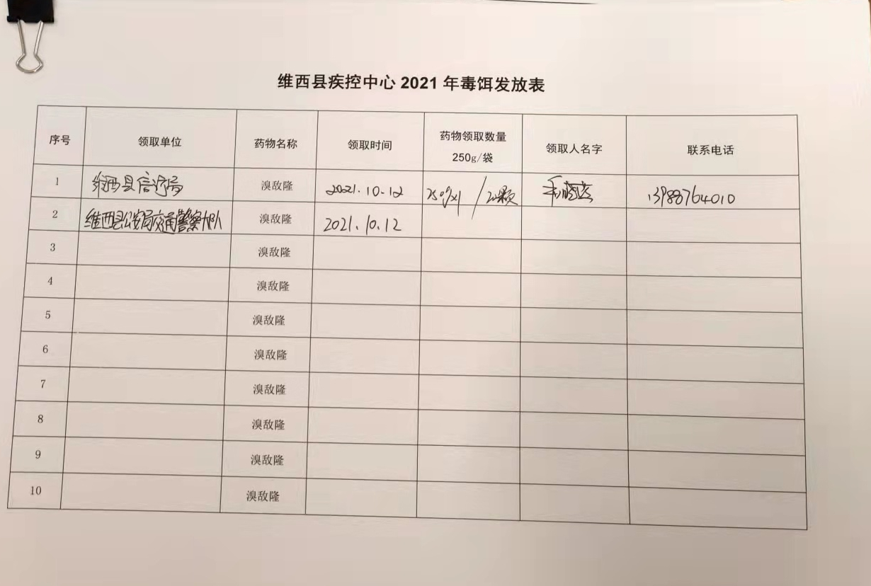 二是一如既往开展病媒生物防制工作。针对病媒生物防制工作相关要求,维西县信访局于10月12日到卫生监督所领取毒饵,对网格区域内的毒饵站及时进行了清理维护,并投放了毒饵。