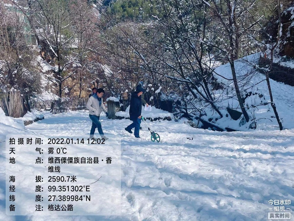 2022年1月13日,维西县境内普降大雪,在纷纷扬扬的大雪中,维西县交通运输局广大技术人员无惧风雪,放弃周末,坚持开展全县农村公路灾害风险普查工作,用青春和汗水,描绘交通人特别的“雪景”。