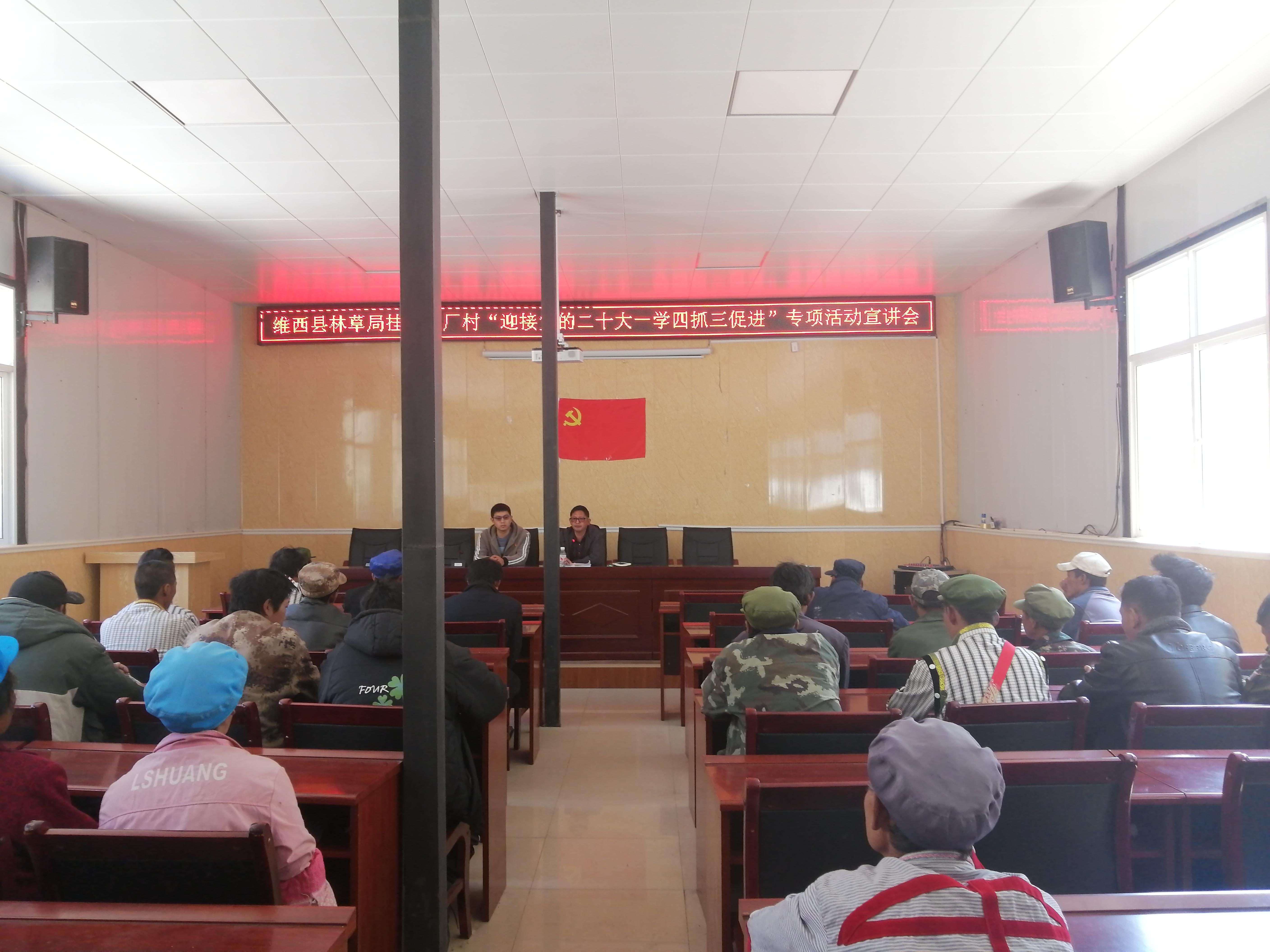 为全面贯彻落实习近平新时代中国特色社会主义思想,深入学习贯彻中央、省、州、县重要会议精神,有序推进“迎接党的二十大 一学四抓三促进”专项活动,全力做好近期维稳和常态化疫情防控工作,3月9日,维西县林草局到挂钩村中路乡新厂村召开“迎接党的二十大 一学四抓三促进”专项活动宣讲会,驻村工作队、村“两委”、自治委员会成员等60余人参加了此次宣讲。