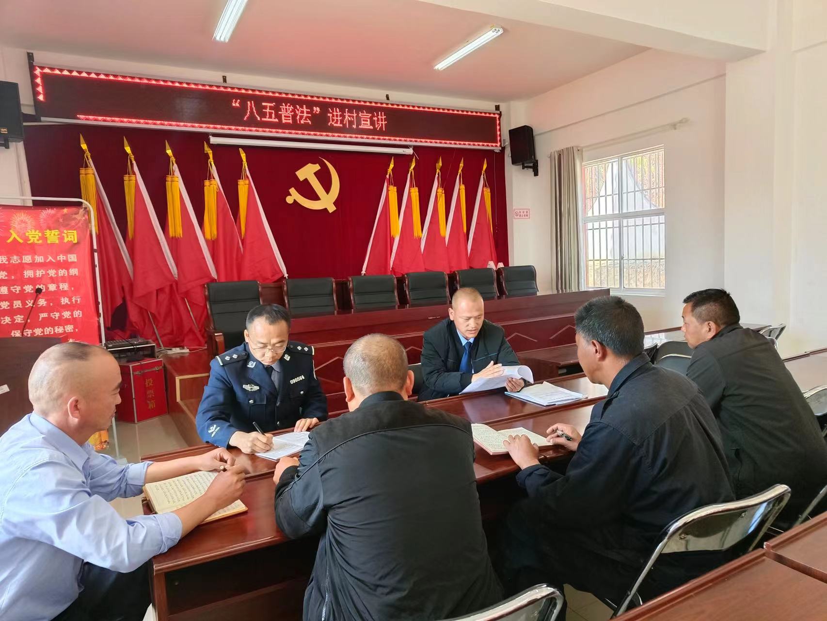 教导员在开展好“迎接二十大 一学四抓三促进”专项活动同时对驻村工作队员及村委会工作人员进行“八五”普法宣讲,今年是“八五”普法工作实施的关键之年,也是法治宣传教育工作承前启后、继往开来的关键之年。抓好依法治理,提升村干部和群众的法治素养,确保“八五”普法取得实实在在的效果。