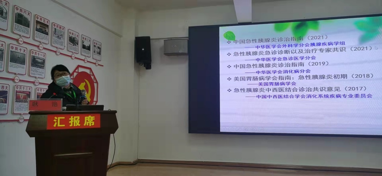 我县各乡镇距离县城路程较远,胰腺炎患者多是在忍受剧烈腹痛才能赶到县级医院就诊,往往病情严重,治疗起来比较复杂。结合实际,帮扶专家耿艳医师精心准备了课件“胰腺炎的规范治疗”,从不同版本的胰腺炎治疗指南着手详细阐述了胰腺炎的规范治疗策略,并结合自己以往的治疗经验详细解答相关科室在治疗上遇到的困难及难点。