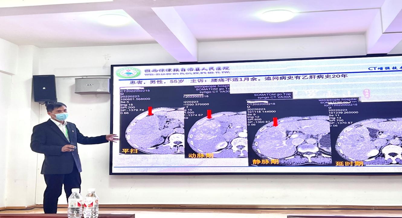 县医院放射科虽配备了64排螺旋CT,但是由于缺乏经验,未能及时开展CT增强检查技术。帮扶专家刘立红医师到县医院开展帮扶工作后,积极培训指导县医院放射科医务人员,目前已成功为就诊患者开展冠脉CTA,头颈部CTA、CTU以及头胸腹部CT增强等多项业务。刘立红老师收集整理相关病例后,当天讲授了“CT增强技术的临床应用价值”一课,病例丰富、图像清晰,令人过目不忘。