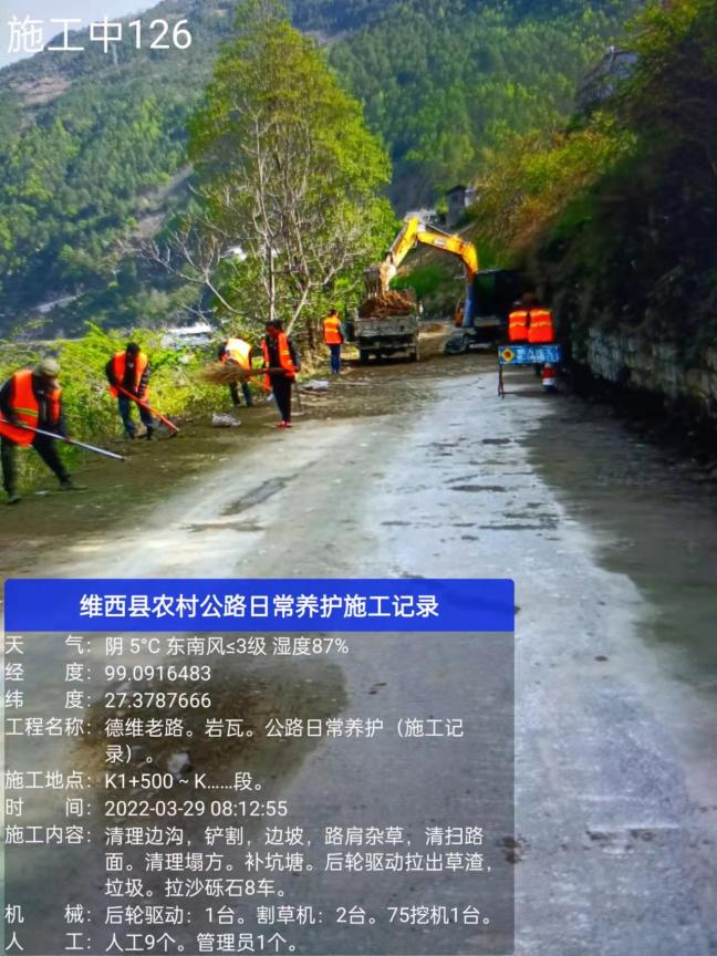 维西县2022年农村公路提升工程正有序推进中。
