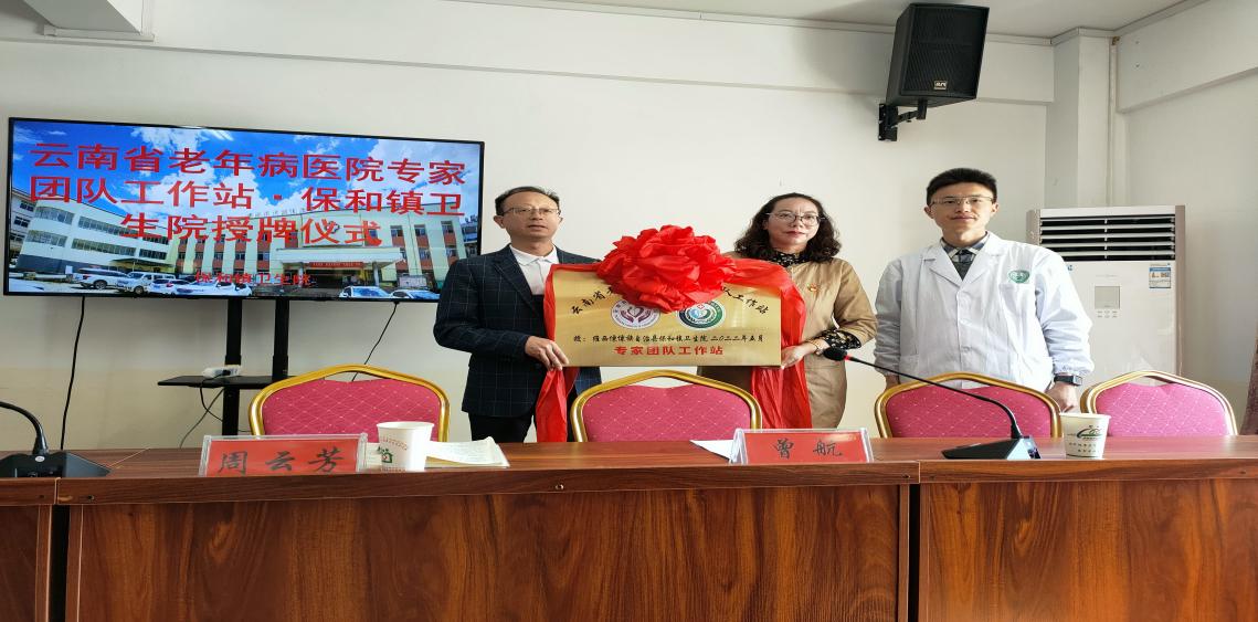 会上县卫健局党委书记、局长周云芳同志、保和镇卫生院支部书记、院长李欣骏同志及全院职工对前来参加授牌仪式的领导和云南省老年病医院专家团队的到来表示欢迎,云南省老年病医院肛肠疾病专家团队的到来,离不开卫健局领导及保和镇政府的关心和支持,更离开云南省老年病医院对我们维西县人民的热心与关爱。健康扶贫是通过提升医疗保障水平、提高医疗服务能力、加强公共卫生服务等手段,让贫困人口能够享受基本健康服务。提高我院的医疗综合服务能力和技术水平发,切实减轻农村贫困人口医疗费用负担。让群众在家门口看病就能享受三甲医院就医水平。并由卫健局党委书记、局长周云芳同志、保和镇卫生院支部书记、院长李欣骏同志与云南省老年病医院肛肠科主任曾航教授对云南省老年病医院专家团队工作站进行了授牌。