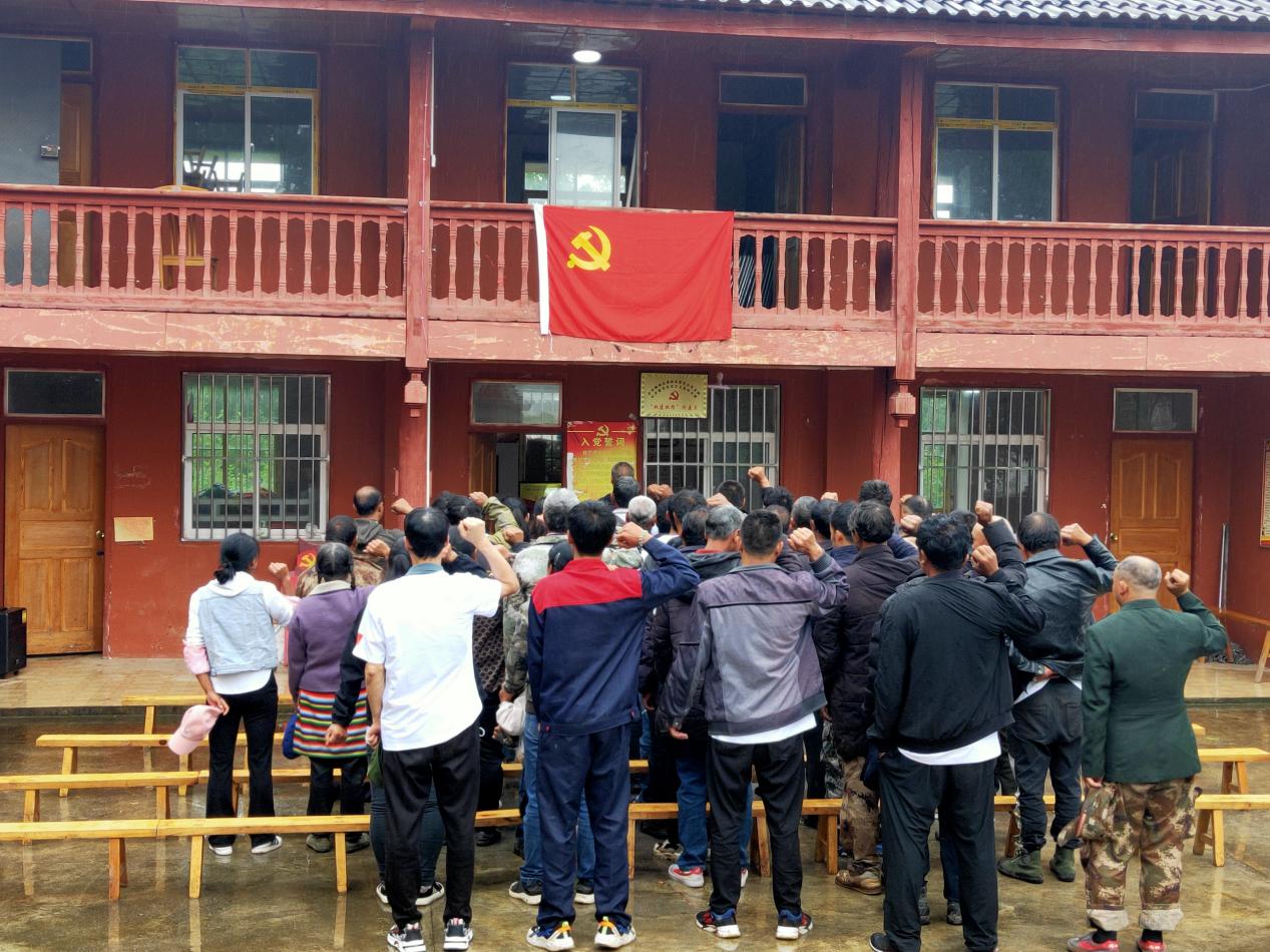 誓言铿锵,初心如磐。在驻村第一书记、村“两委”以及支部书记的带领下,各支部党员面向鲜红的中国共产党党员旗,高举右拳,再一次高声宣读入党誓词。铿锵有力的声音,喊出了每一名党员忠于党、忠于祖国、忠于人民的铮铮誓言,激励着全体党员时刻不忘初心、牢记使命。党员们在党旗下接受心灵的净化和洗礼,在坚定有力的宣誓声中回望初心,汇聚起矢志不渝跟党走的磅礴力量。