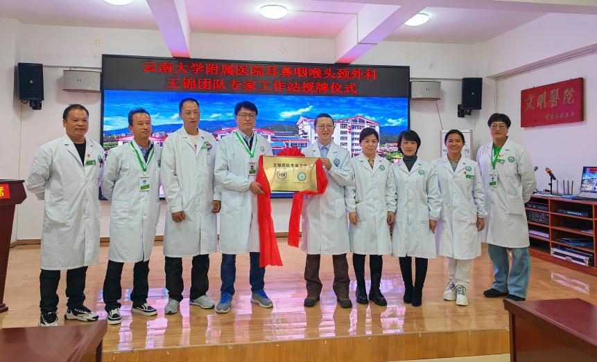 云南大学附属医院耳鼻咽喉头颈外科王锦团队专家工作站正式落户维西县人民医院,签约授牌仪式在县人民大会议室举行,省人民医院头颈外科王锦专家团队、维西县人民医院领导班子与相关科室部门负责人出席签约授牌仪式。