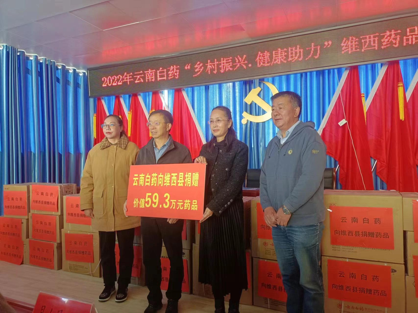 云南白药集团已经有120年的历史,一直以守护生命和健康为己任,一直秉承群众生命健康工作。云南白药集团自2015年帮扶维西县以来,共捐赠了药品等物资425万元,对维西医药卫生发展做出积极贡献。