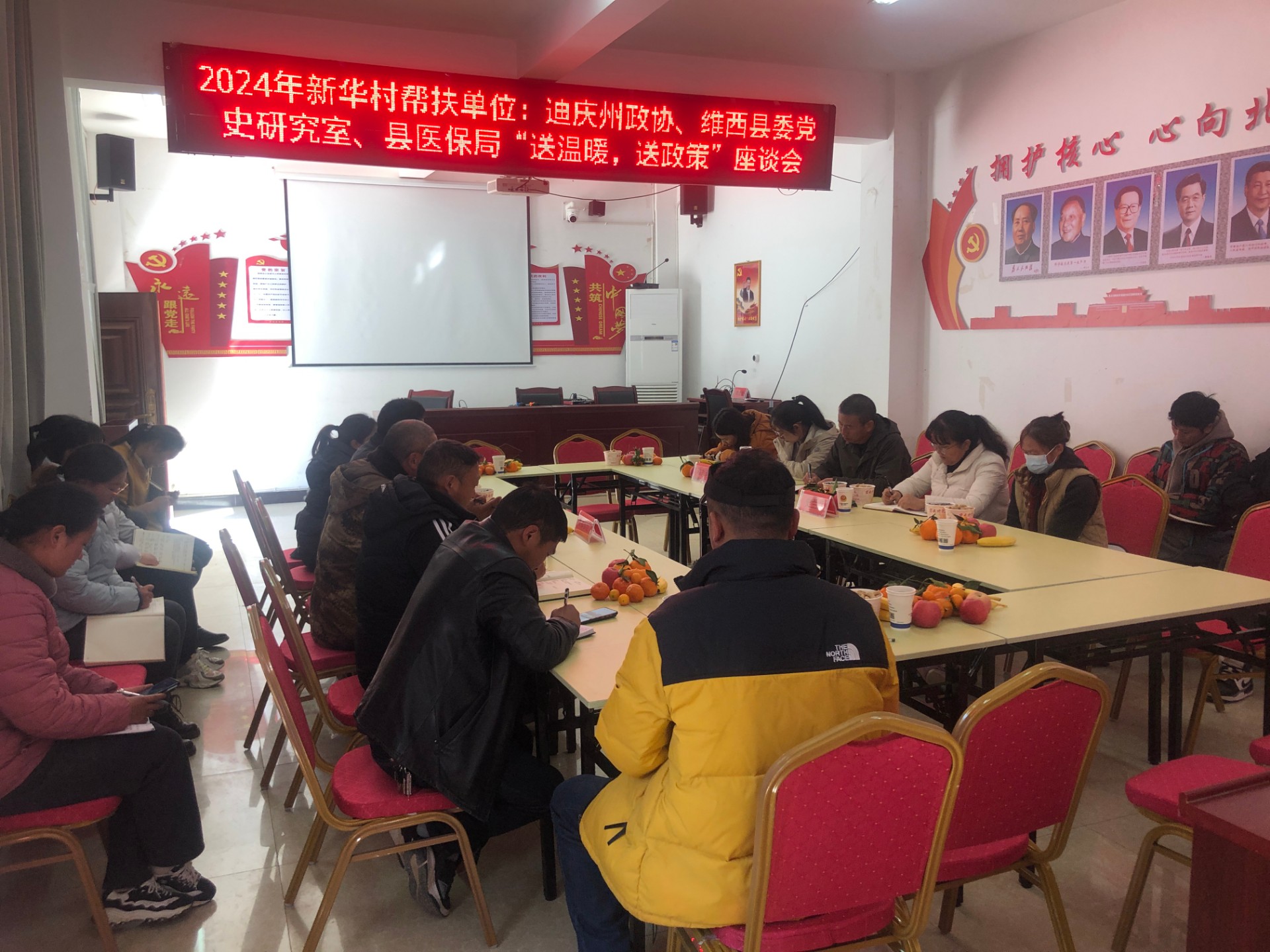 为认真落实帮扶责任切实做好巩固拓展脱贫攻坚成果同乡村振兴有效衔接迎检工作及做好元旦春节期间走访慰问工作,1月9日,维西县医疗保障局党支部联合县委党史研究室党支部、一心堂党支部、弘仁堂大药堂党支部和新华村党总支开展支部联建“接续奋斗开新局 扬帆起航再出发”主题党日活动,助力巩固拓展脱贫攻坚成果同乡村振兴有效衔接。