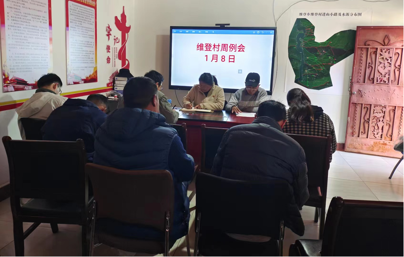 为抓好基层党组织党风廉政建设工作,督促引导广大党员、班子成员带头遵守国家法律法规,树牢纪法意识,规范日常行为,维护社会良好秩序。2024年1月8日,维登村党总支组织召开1月以案促改学习专题会议。