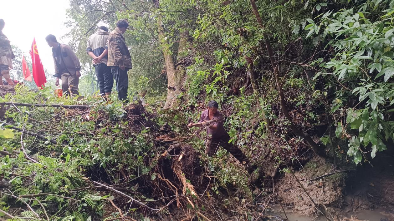因突降暴雨,加之附近土质松软,平底一、二组旁的子母底河被滑坡流石堵塞。接到群众反映后,村“两委”主要领导立即组织人员,于8月4日上午9:00到达目的地,开始疏通河流。活动过程中,大家发挥不怕苦、不怕累精神,党员冲在前、群众跟在后,16:00阻塞河流被疏通,消除了安全隐患。