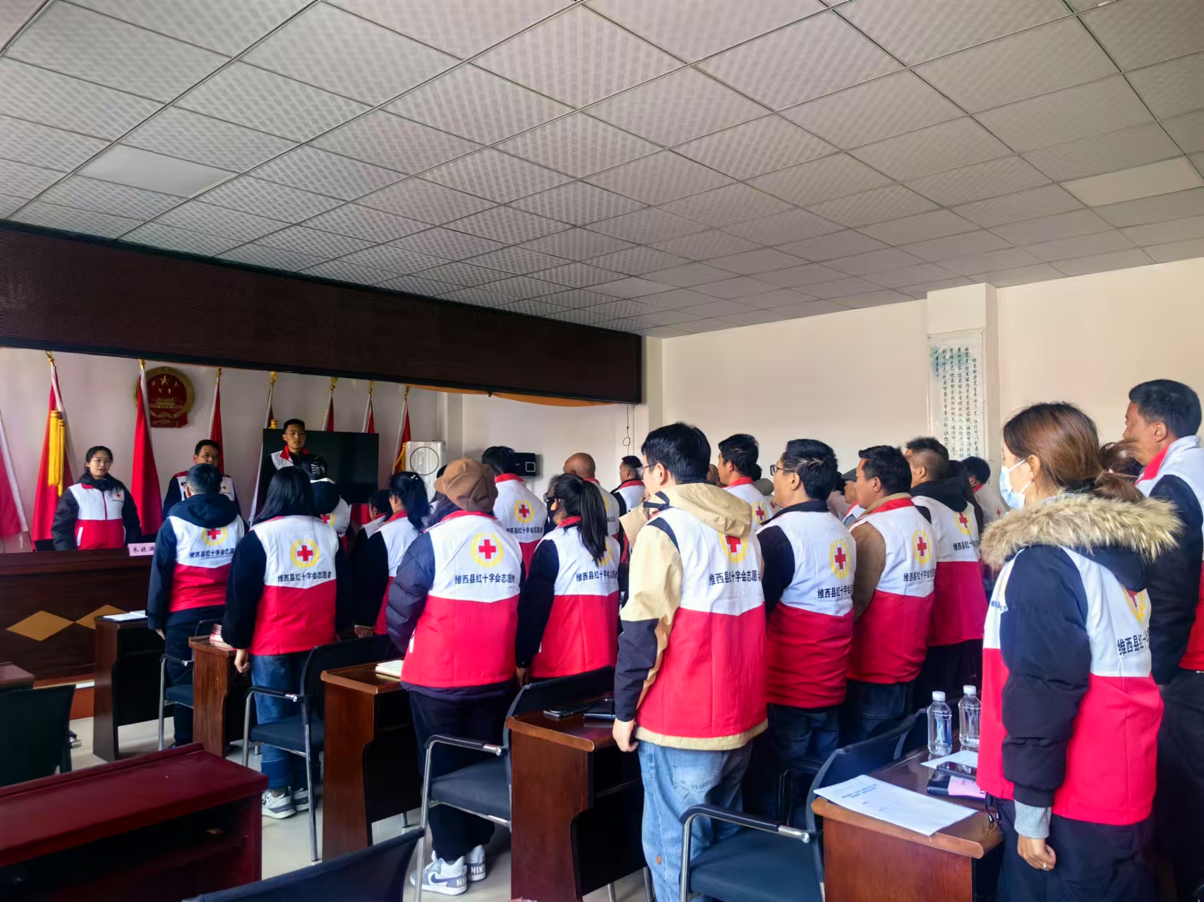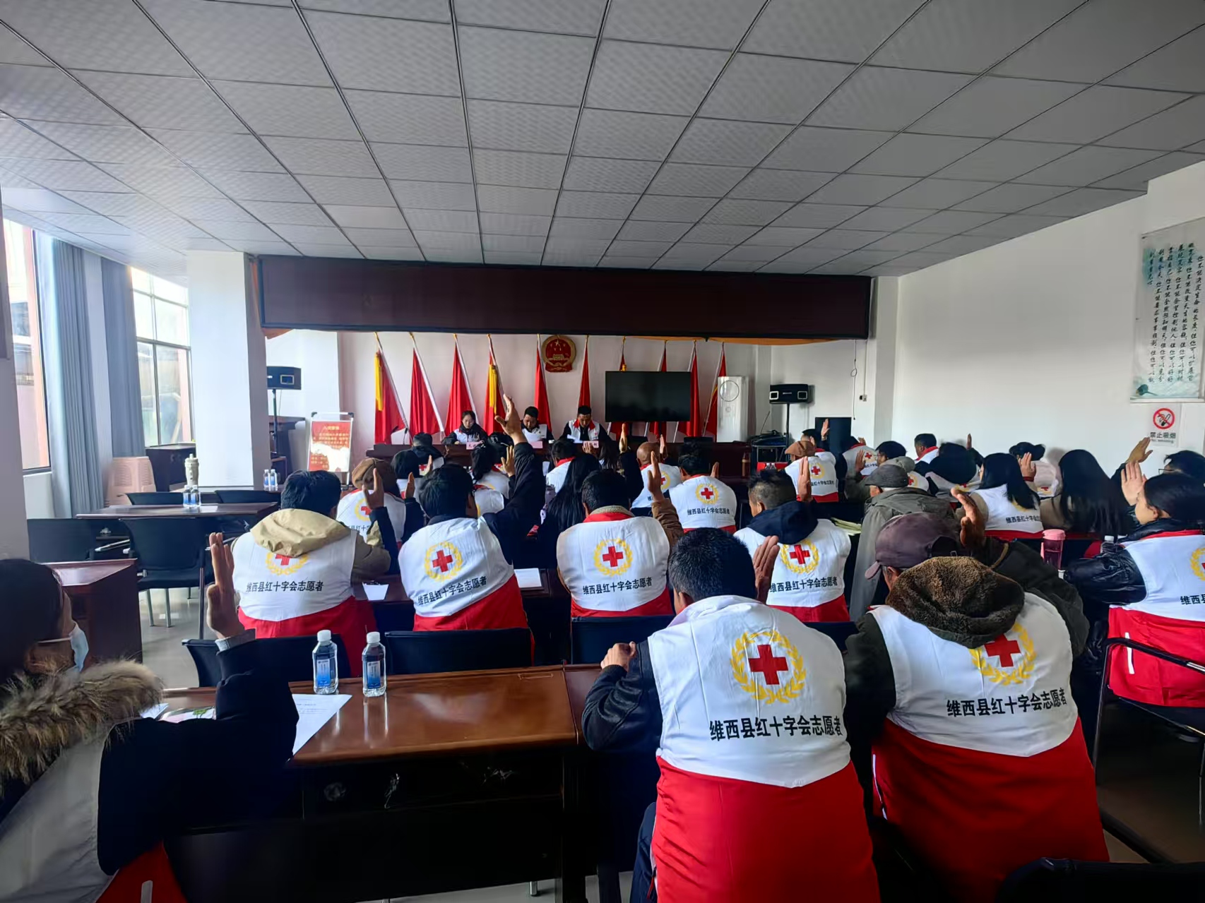 为弘扬“人道、博爱、奉献”的红十字精神,建立和完善我乡红十字会基层组织,充分发挥党联系群众的桥梁纽带和政府在人道救助领域的助手作用。12月10日,攀天阁乡红十字会成立大会暨第一次会员大会在庄严的国歌声中顺利拉开帷幕。本次会议由乡党委副书记主持,攀天阁乡的41名红十字会会员齐聚一堂,共同见证了这一重要时刻。