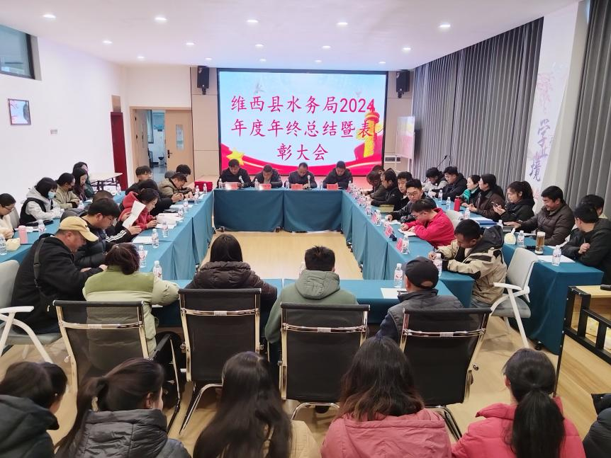 2025年1月10日,维西县水务局组织召开2024年度年终总结暨表彰大会,会议由县水务局副局长曾建山同志主持,全局干部职工、各乡镇分管领导及水管站工作人员参加会议。会议对2024年水利工作进行了总结,同时,明确了2025年水利工作的目标任务。