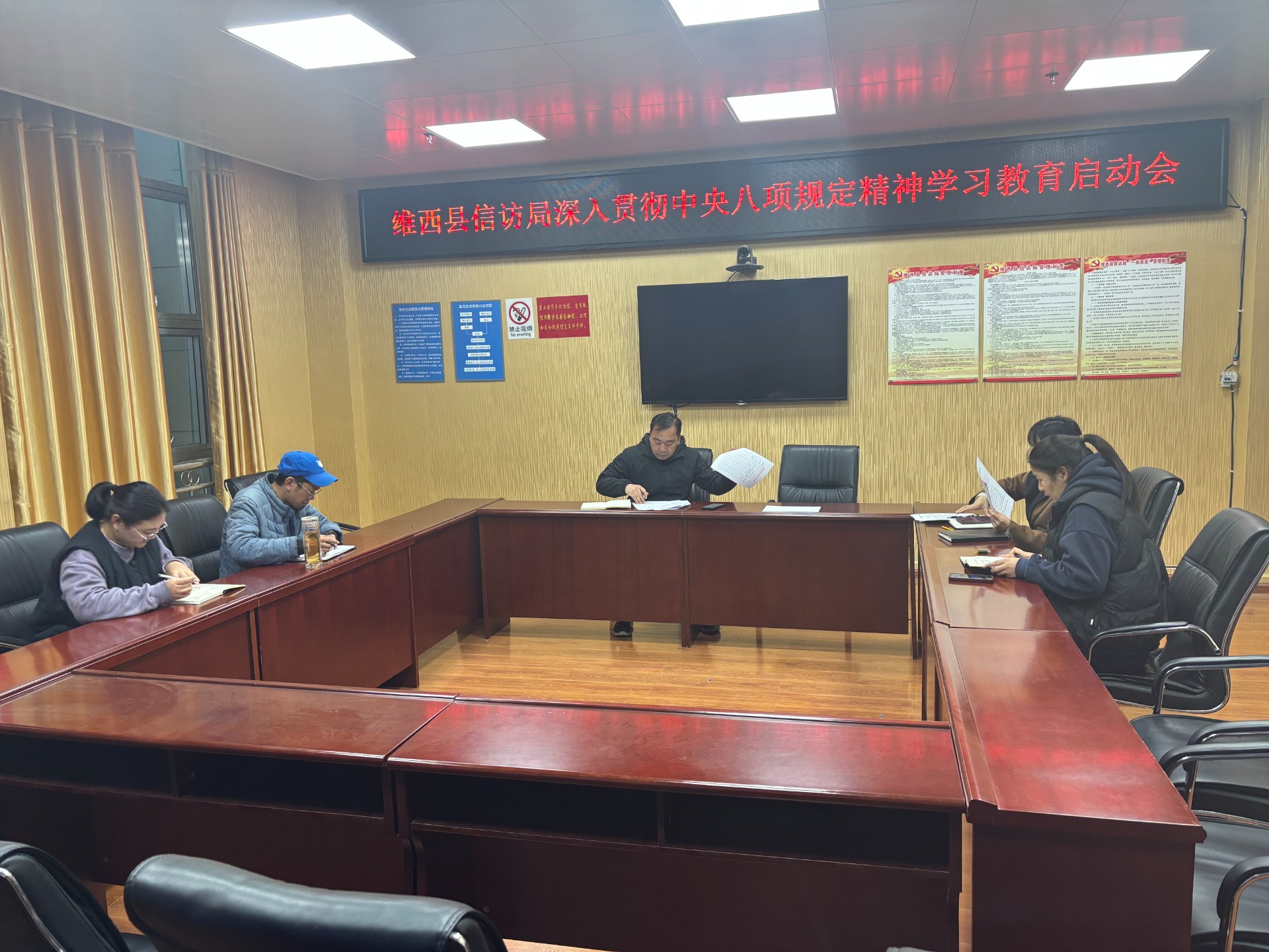 为进一步巩固深化主题教育和党纪学习教育成果、纵深推进全面从严治党,3月26日上午,县信访局召开深入贯彻中央八项规定精神学习教育启动会,县信访局党组书记、局长徐俊主持会议并作动员部署,全体干部职工参加会议。