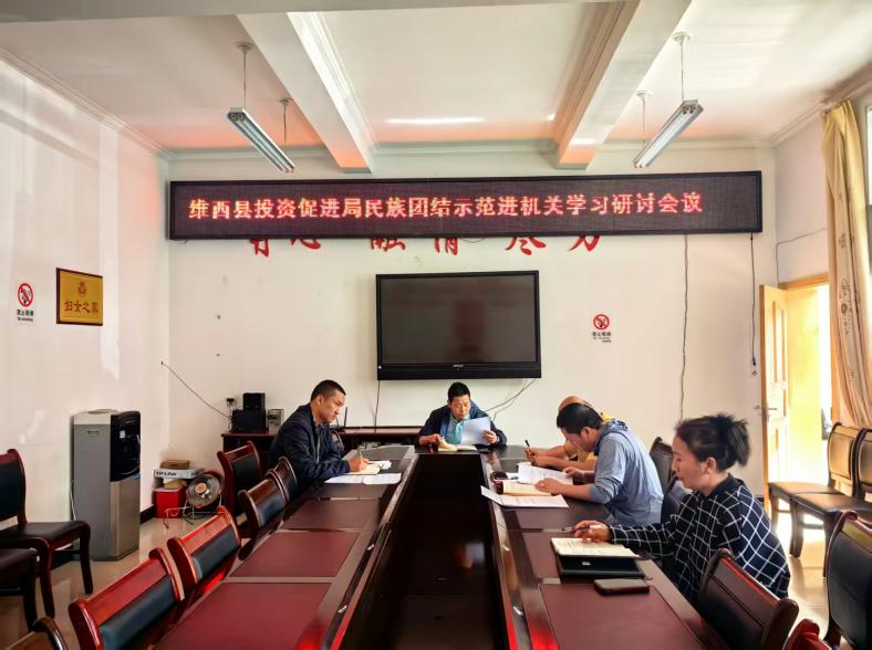 为深入推进民族团结进步示范进机关工作,5月26日,县投资促进局组织召开民族团结示范进机关学习研讨会议。局领导班子、各科室负责人及全体干部职工齐聚一堂,共同学习交流,为民族团结进步创建工作出谋划策。