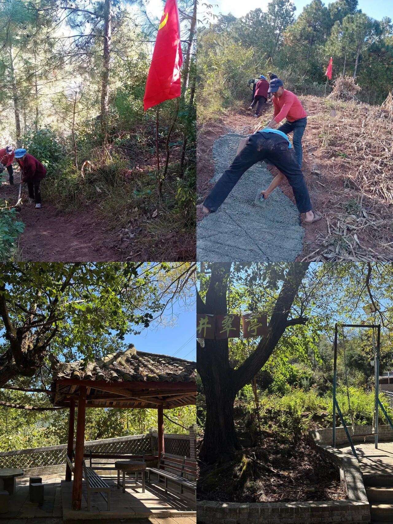 修好脚下路,点亮心中灯。“以前送孩子上幼儿园,晴天一身灰,雨天一脚泥。”村民们口中的揪心路,如今变成了平整的水泥台阶。支部将群众“急难愁盼”放在首位,党员带头投工投劳,仅用一周时间便硬化了幼儿园门前1公里的泥泞小道。路通了,心更近了,家长们纷纷竖起大拇指:“这才是真正的惠民实事!”共建共享,打造宜居家园。在支部号召下,党员化身“施工队”,自带工具修建岔枝洛下组休闲社区游园。从清理垃圾到搬运石料,从平整土地到栽种绿植,党员群众齐心协力,硬是把荒地变成了鸟语花香的“休息区”。如今,这里成了村民唠家常、休闲的好去处,“白天忙致富,晚上享幸福”成了村民生活的真实写照。