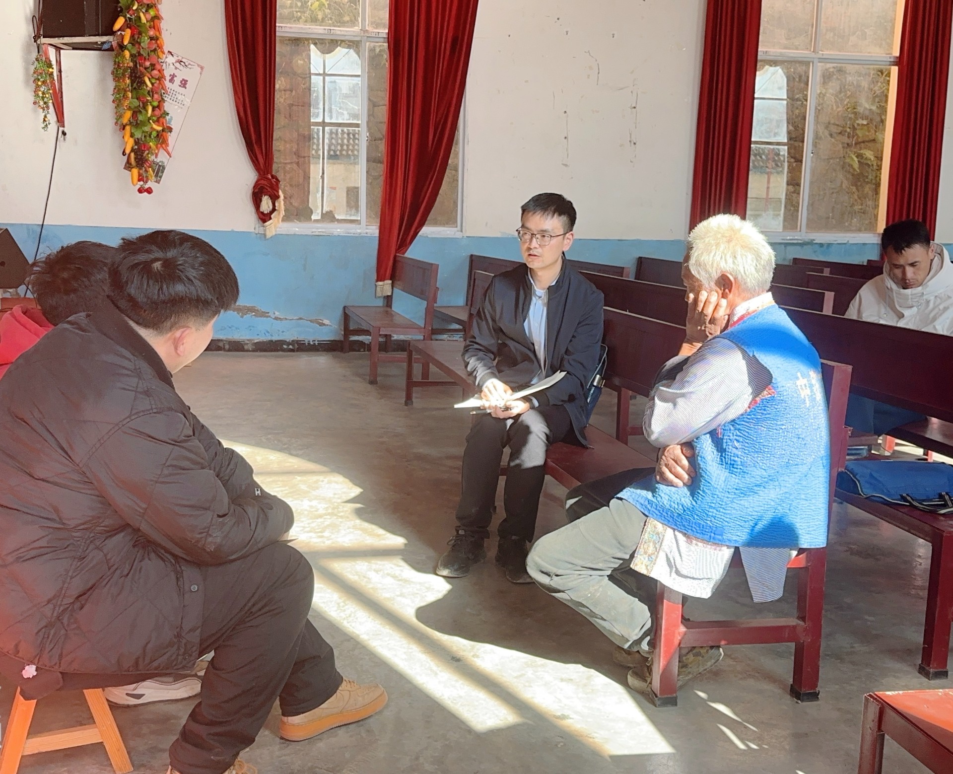 12月3日,县委常委、统战部部长潘高林到维西县基督教两会宣讲党的二十届四中全会精神,并就基督教两会换届选举、推进宗教中国化实践等重点工作开展调研。