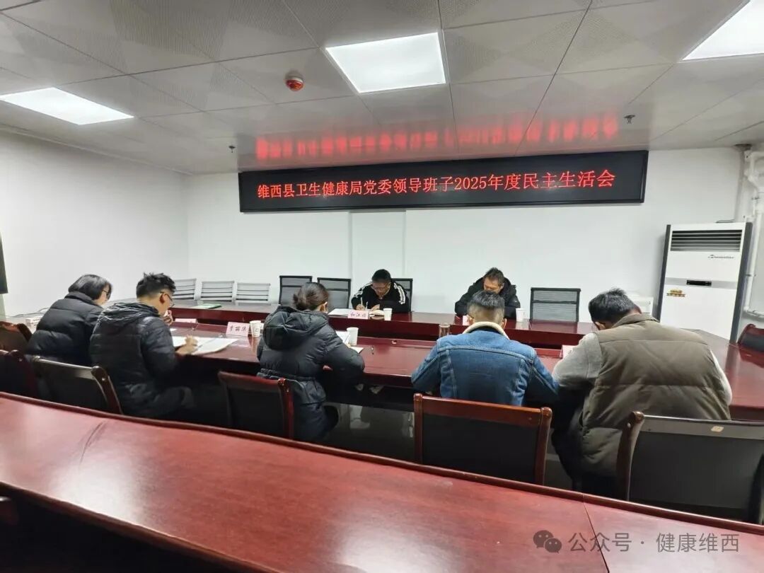 2026年2月4日,维西县卫生健康局召开党委领导班子2025年度民主生活会。会议深入学习贯彻习近平新时代中国特色社会主义思想,全面贯彻落实党的二十届四中全会精神,围绕锲而不舍落实中央八项规定精神,推进作风建设常态化长效化,对标卫生健康事业思想和工作实际,全面深入查摆问题,明确努力方向。局党委书记、局长主持会议,县委第15督导组到会指导。