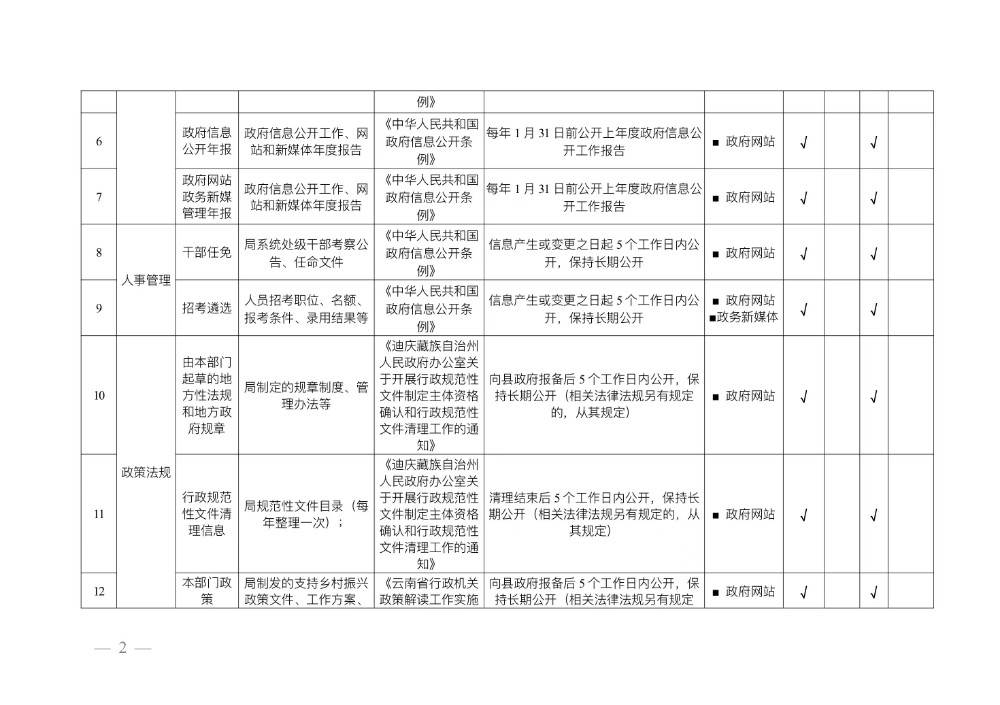 迪庆州生态环境局维西分局政府信息公开基本目录