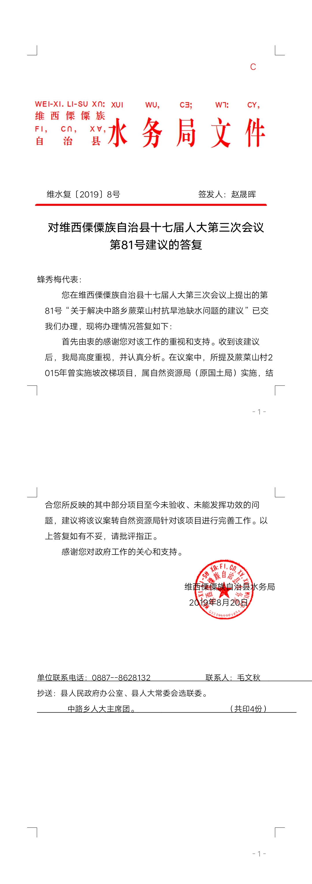 【政府信息】对维西傈僳族自治县十七届人大第三次会议第81号建议的答复