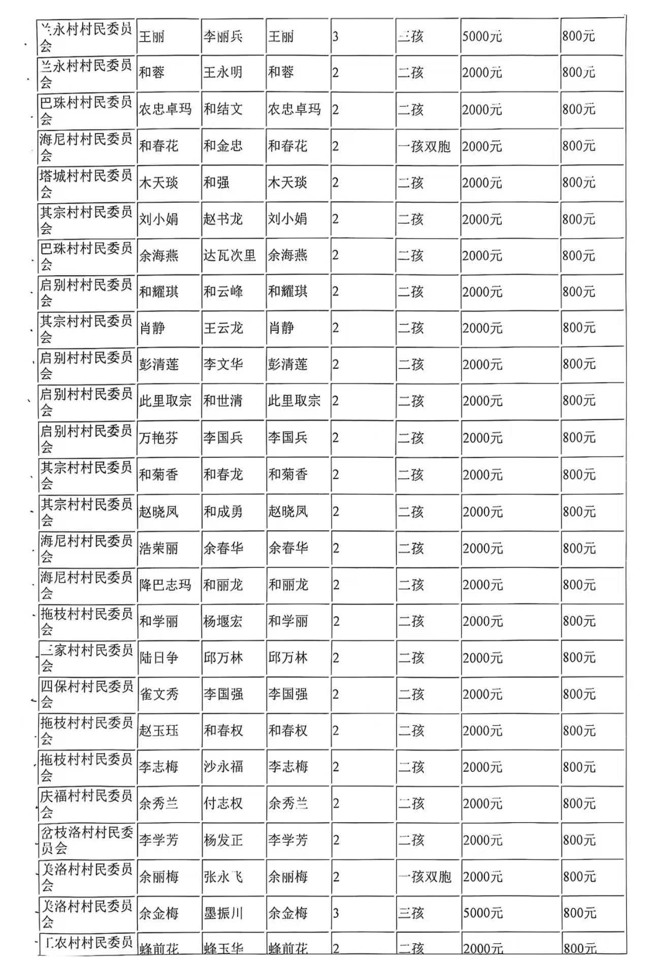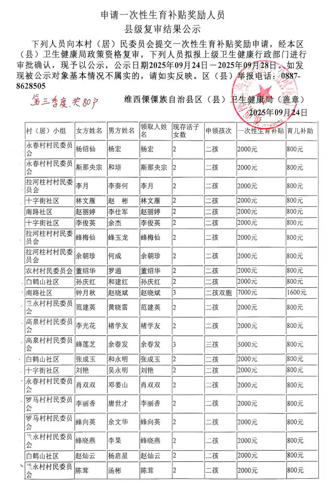 维西县申请一次性生育补贴奖励人员县级复审结果公示20250924