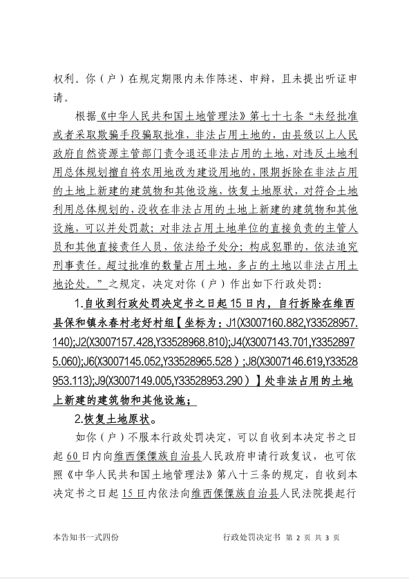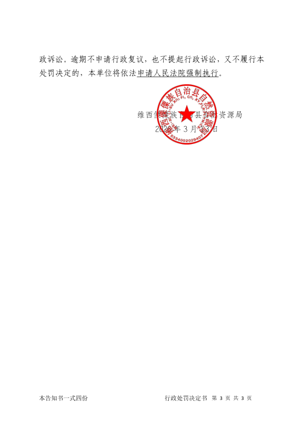 木仕军户的行政处罚决定书