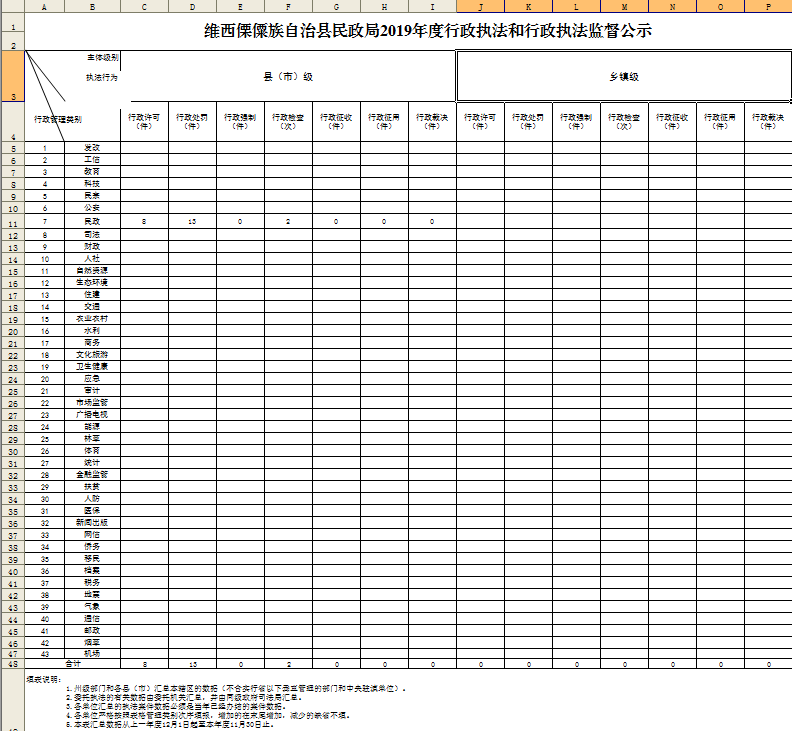 【信息公开】维西傈僳族自治县民政局2019年度行政执法和行政执法监督公示