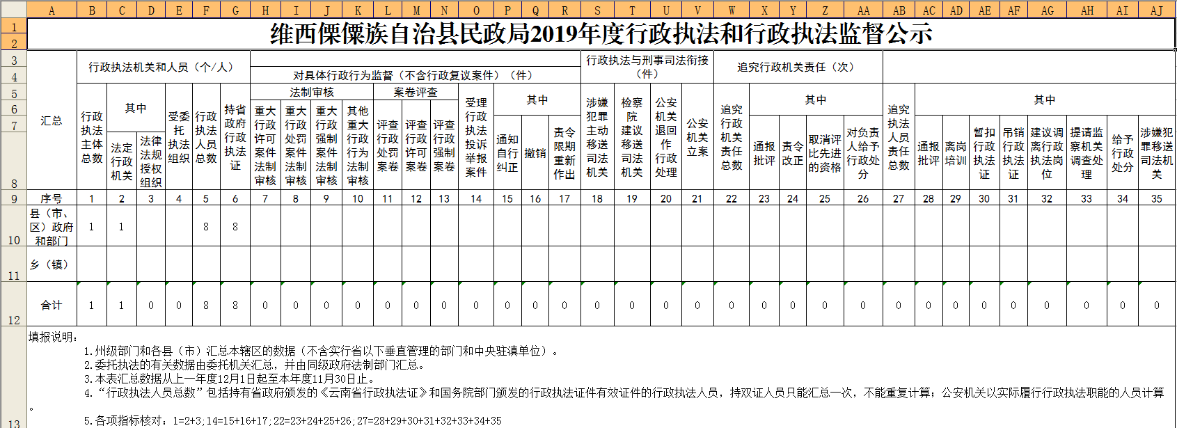 【信息公开】维西傈僳族自治县统计局2019年行政执法和行政执法监督公示