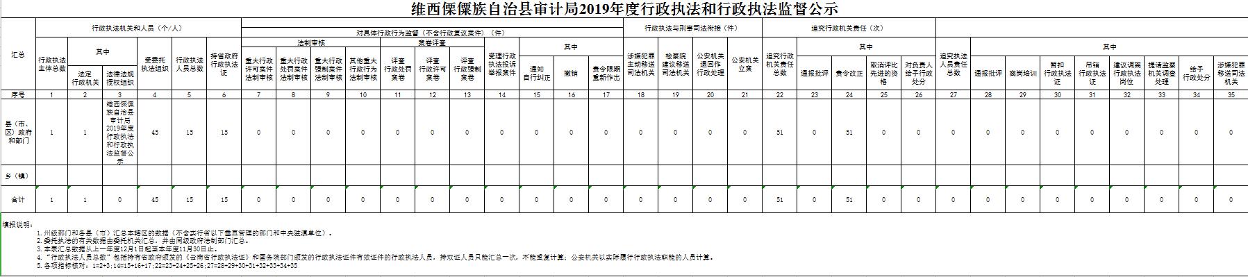 【信息公开】维西傈僳族自治县审计局2019年度行政执法和行政执法监督公示