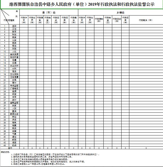 【信息公开】维西傈僳族自治县中路乡人民政府2019年行政执法和行政执法监督公示