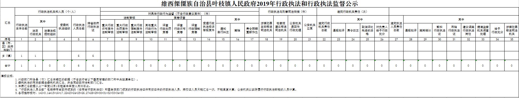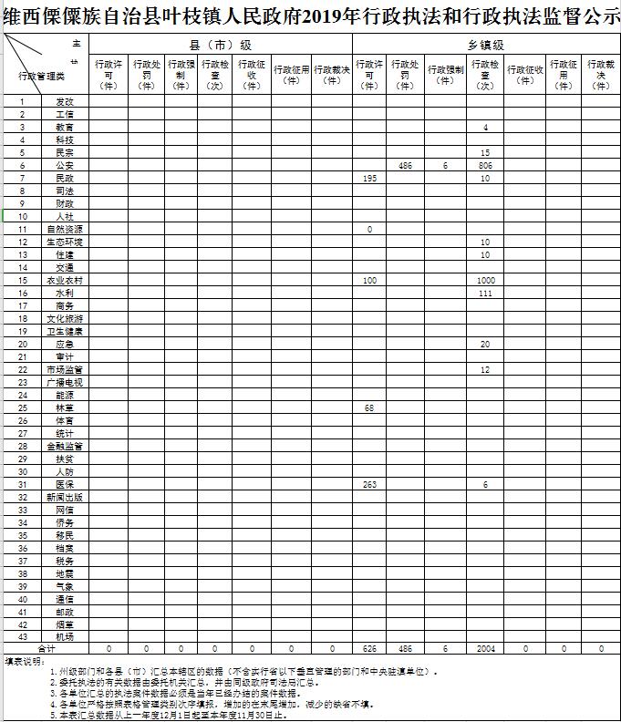 【信息公开】维西傈僳族自治县叶枝镇人民政府2019年行政执法和行政执法监督公示