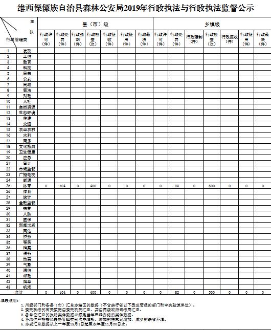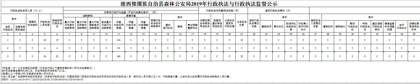 【信息公开】维西傈僳族自治县森林公安局2019年行政执法与行政执法监督公示